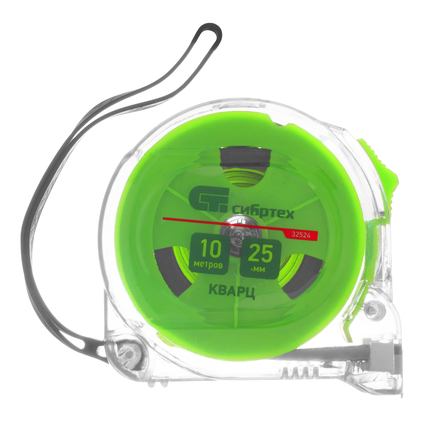 Рулетка Кварц,прозрачный корпус,амортизатор,10 м х 25 мм Сибртех в Уфе