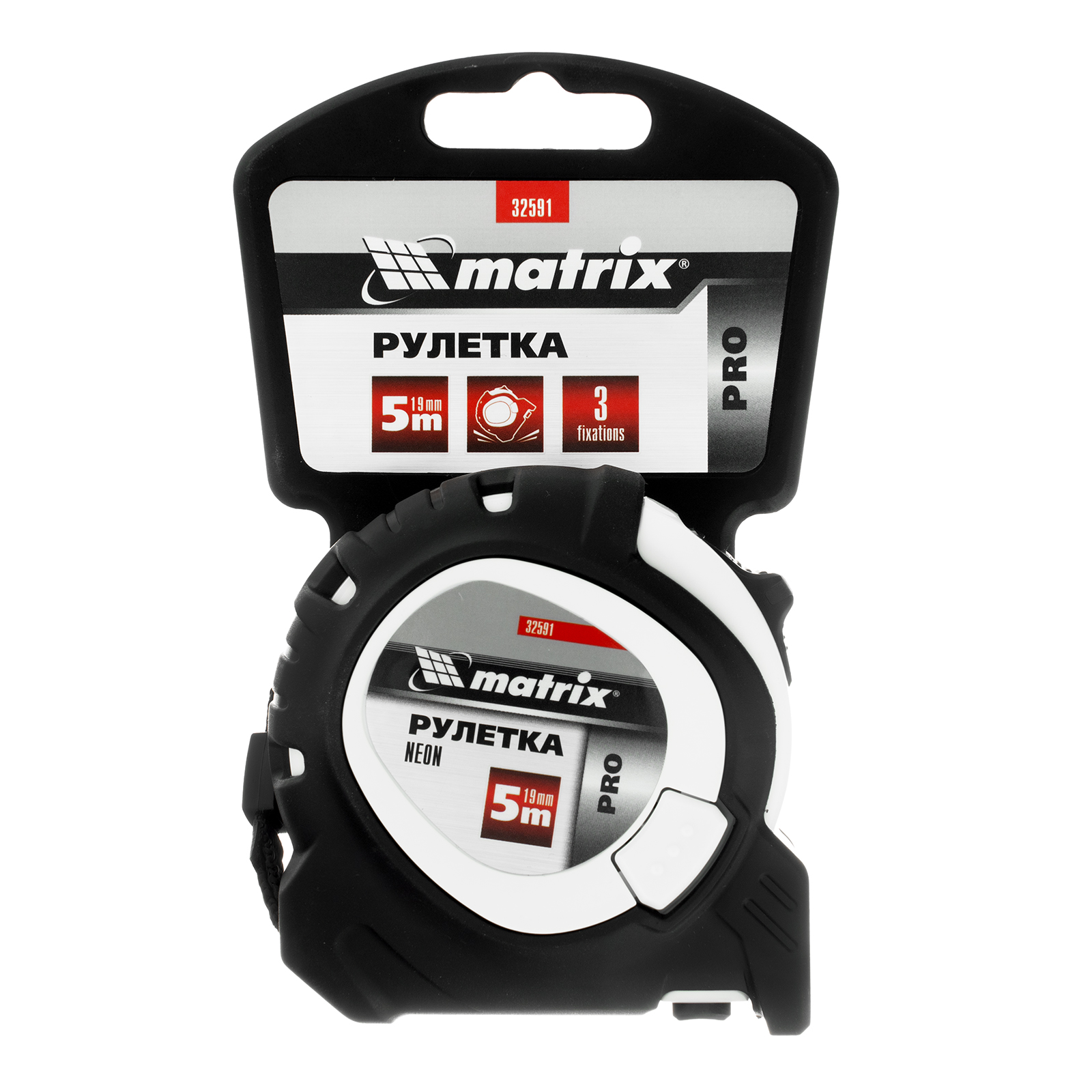 Рулетка Neon,5 м x 19 мм,обрезиненный корпус,3 фиксации,Pro Matrix в Уфе