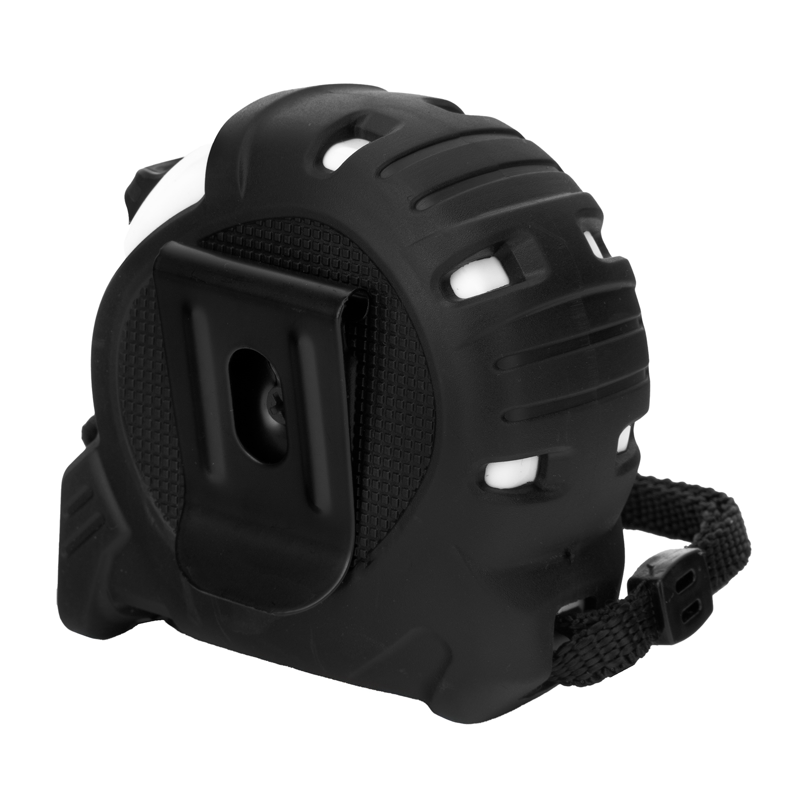 - Удобная транспортировка — рулетку можно повесить на запястье за ремешок или закрепить на поясе при помощи металлического зажима на корпусе.
