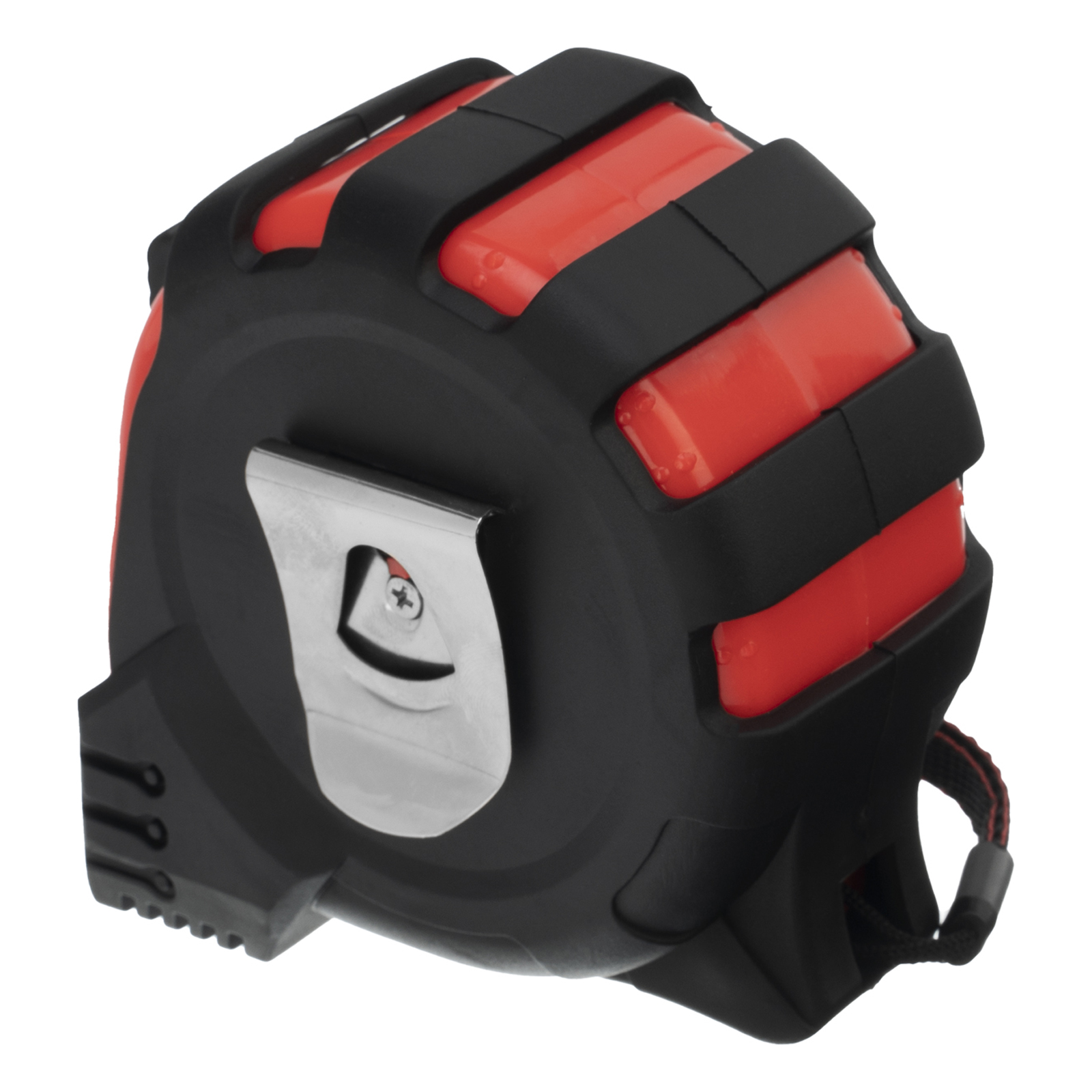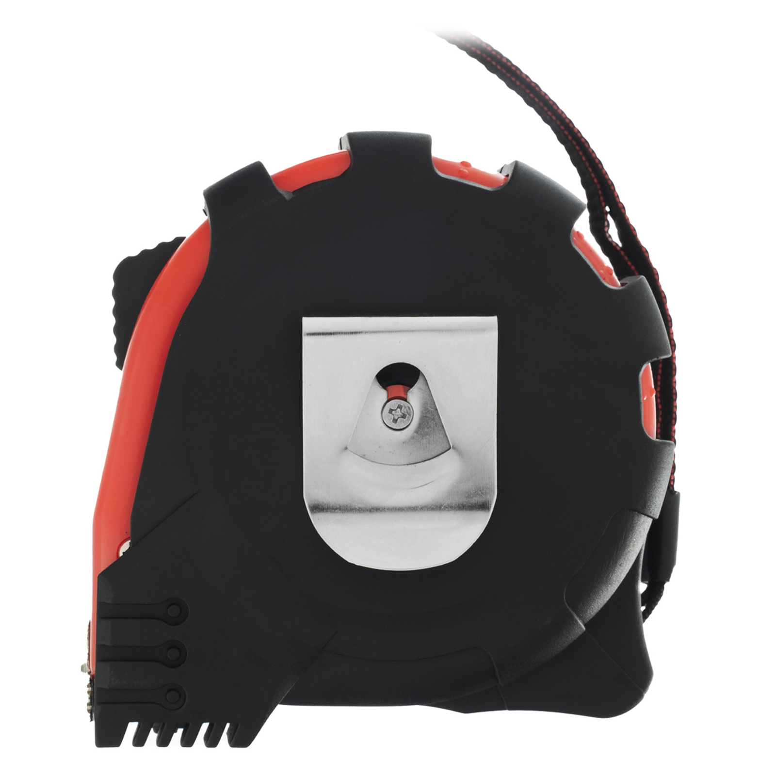 - Дополнительные возможности — шнурок для крепления на запястье уменьшает риск падения рулетки, на боковой поверхности имеется зажим для фиксации рулетки на поясном ремне.