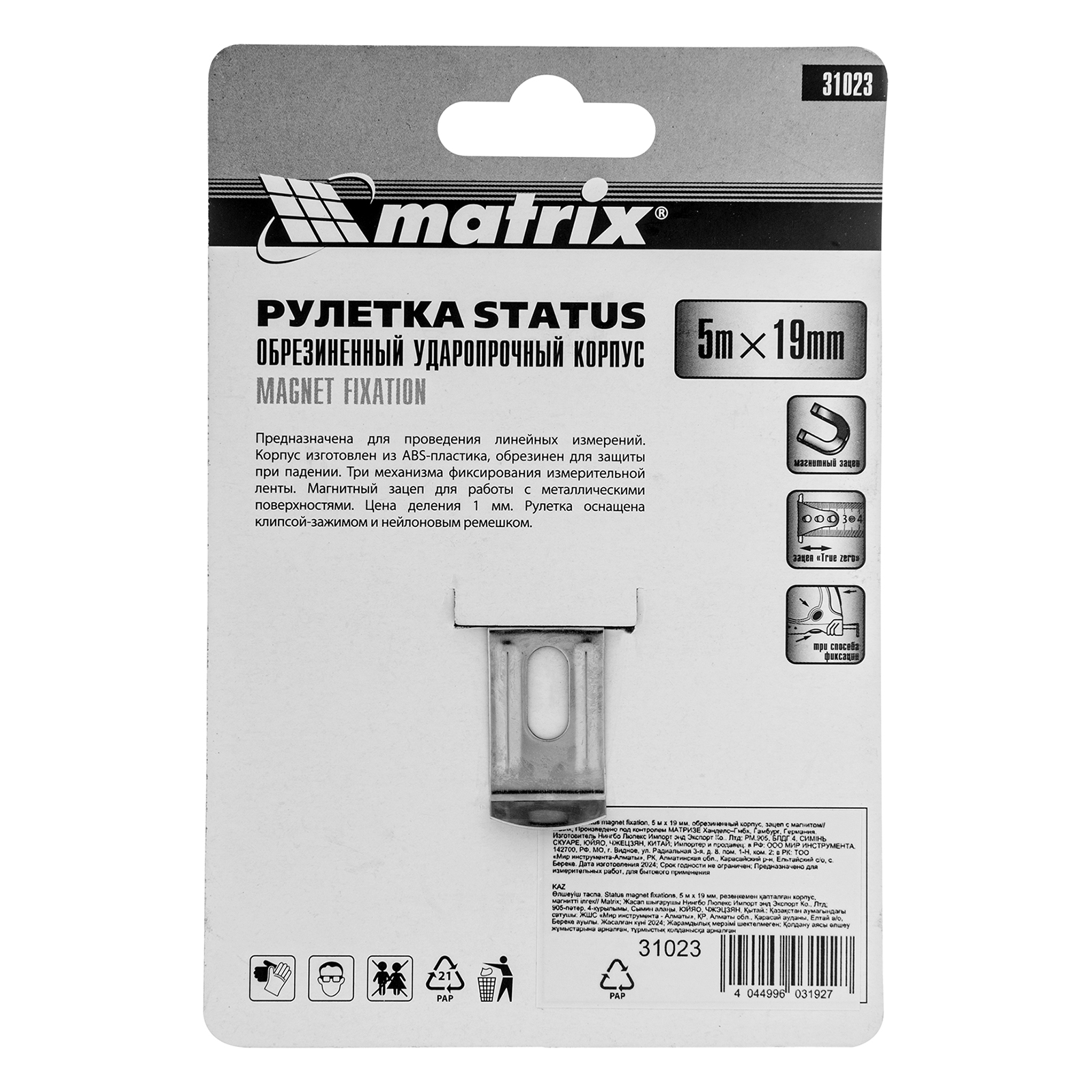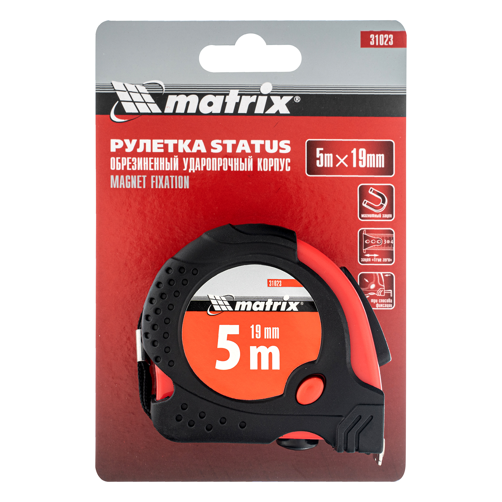 Рулетка Status Magnet fixation,5 м х 19 мм,обрезиненный корпус,зацеп с магнитом Matrix в Уфе