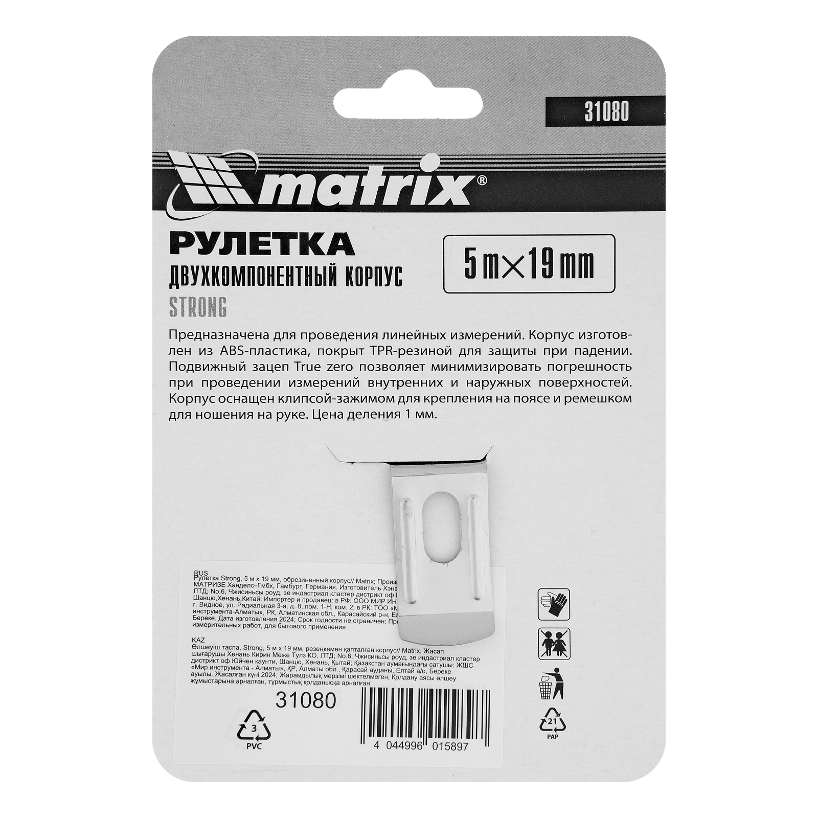 Рулетка Strong,5 м х 19 мм,обрезиненный корпус Matrix в Уфе