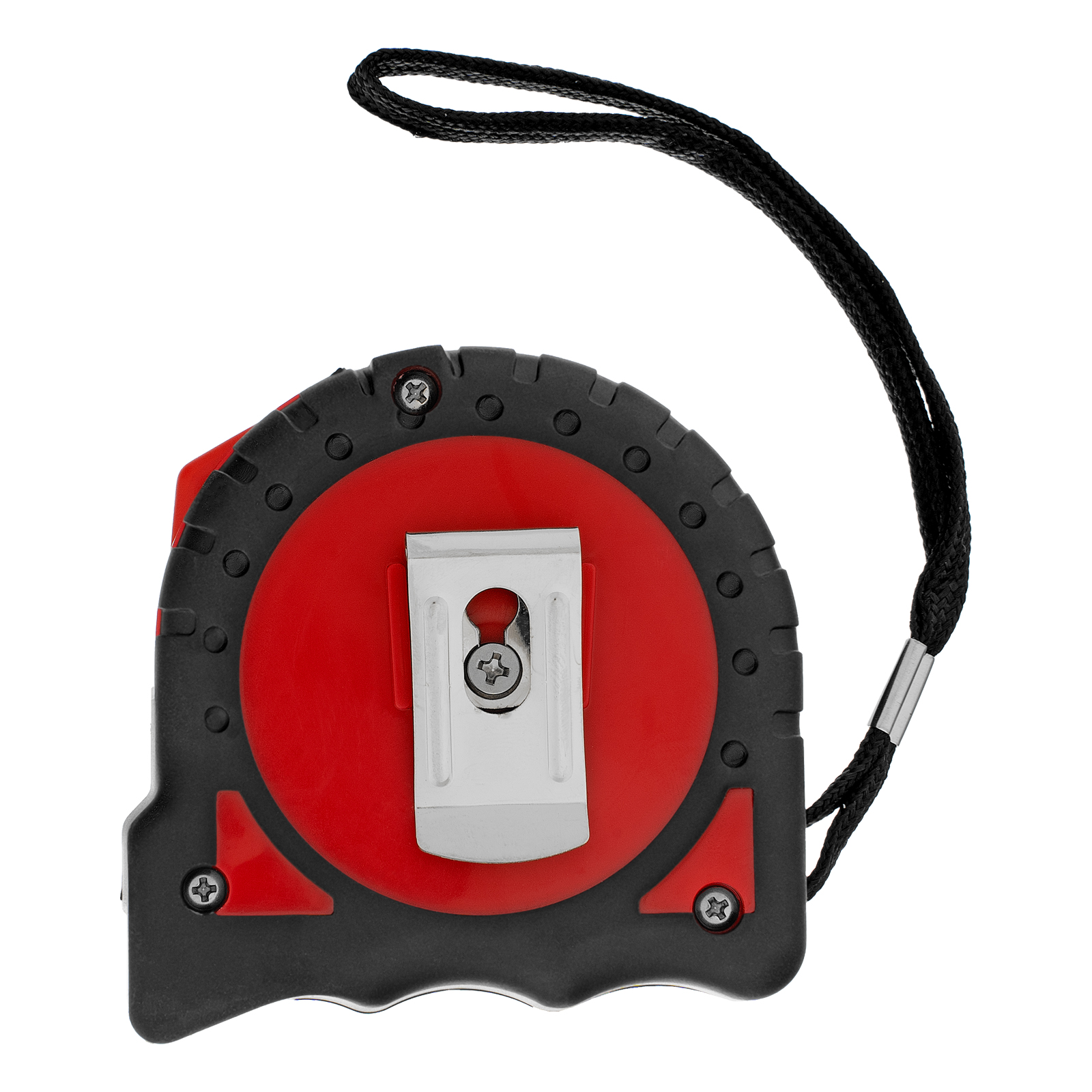 - Комфортная транспортировка — нейлоновый ремешок позволяет подвешивать рулетку на запястье, при помощи металлической клипсы-зажима ее можно зафиксировать на поясе.