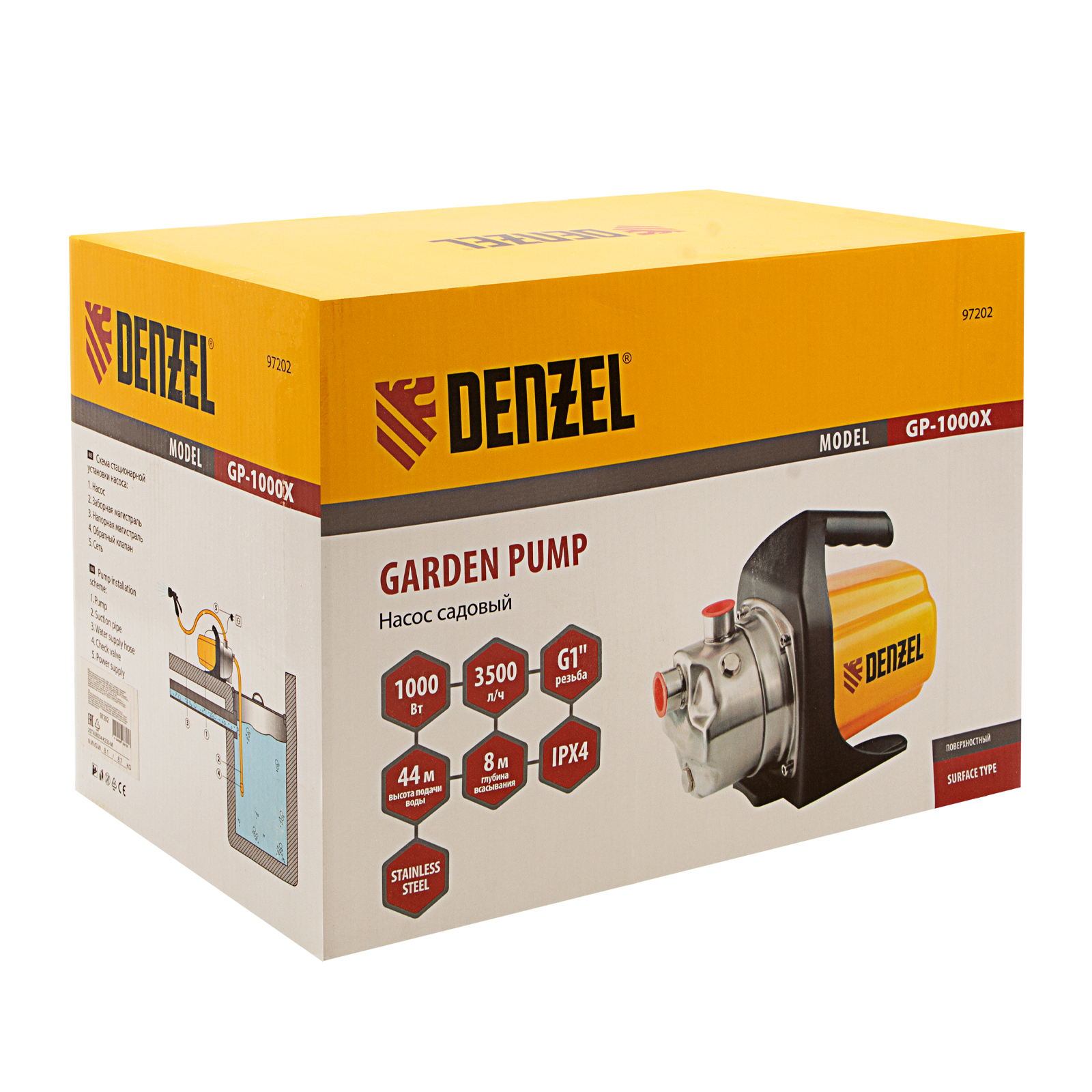 Садовый поверхностный насос GP 1000Х, 1000 Вт, 3500 л/ч, подъем 44 м, нержавейка Denzel в Уфе