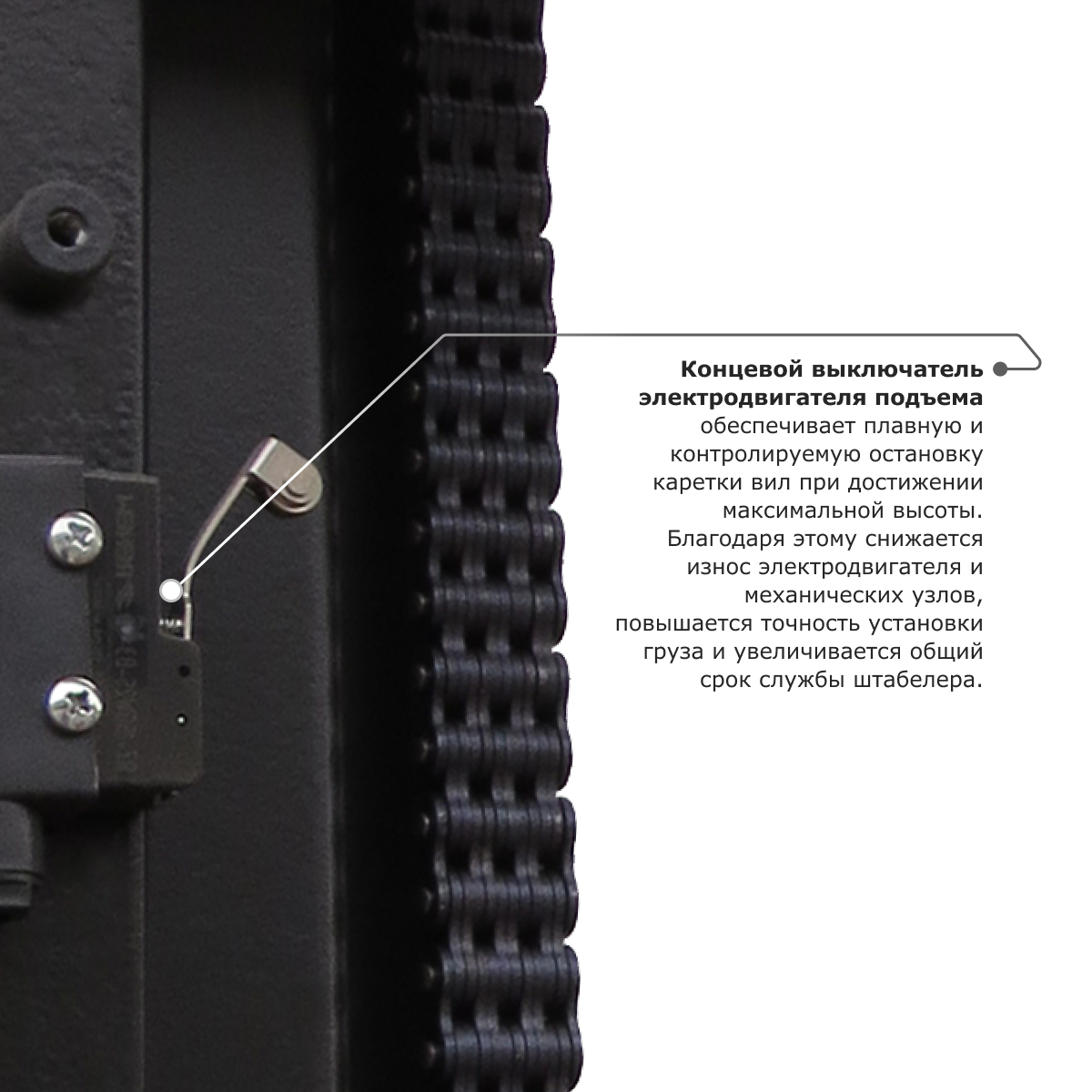 - боковое расположение рычага управления для улучшения обзорности и маневренности штабелера;