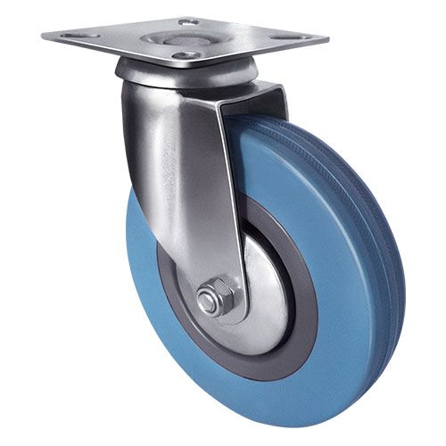 Колесо аппаратное поворотное SCg 93 предназначено для легкого торгового, лабораторного, медицинского, гостиничного, офисного и складского оборудования. Шинка выполнена из термопластичной серой резины. В оси установлен подшипник скольжения. Кронштейн с платформенным типом креплением изготовлен из оцинкованной стали. Полипропиленовый обод закрыт стальными кожухами. Не оставляет следов на напольных покрытиях. Отличается хорошими ходовыми качествами, повышенной маневренностью, низким уровнем шума, устойчивостью к внешним химическим воздействиям. Диапазон температур — от -35ºC до +60ºC.