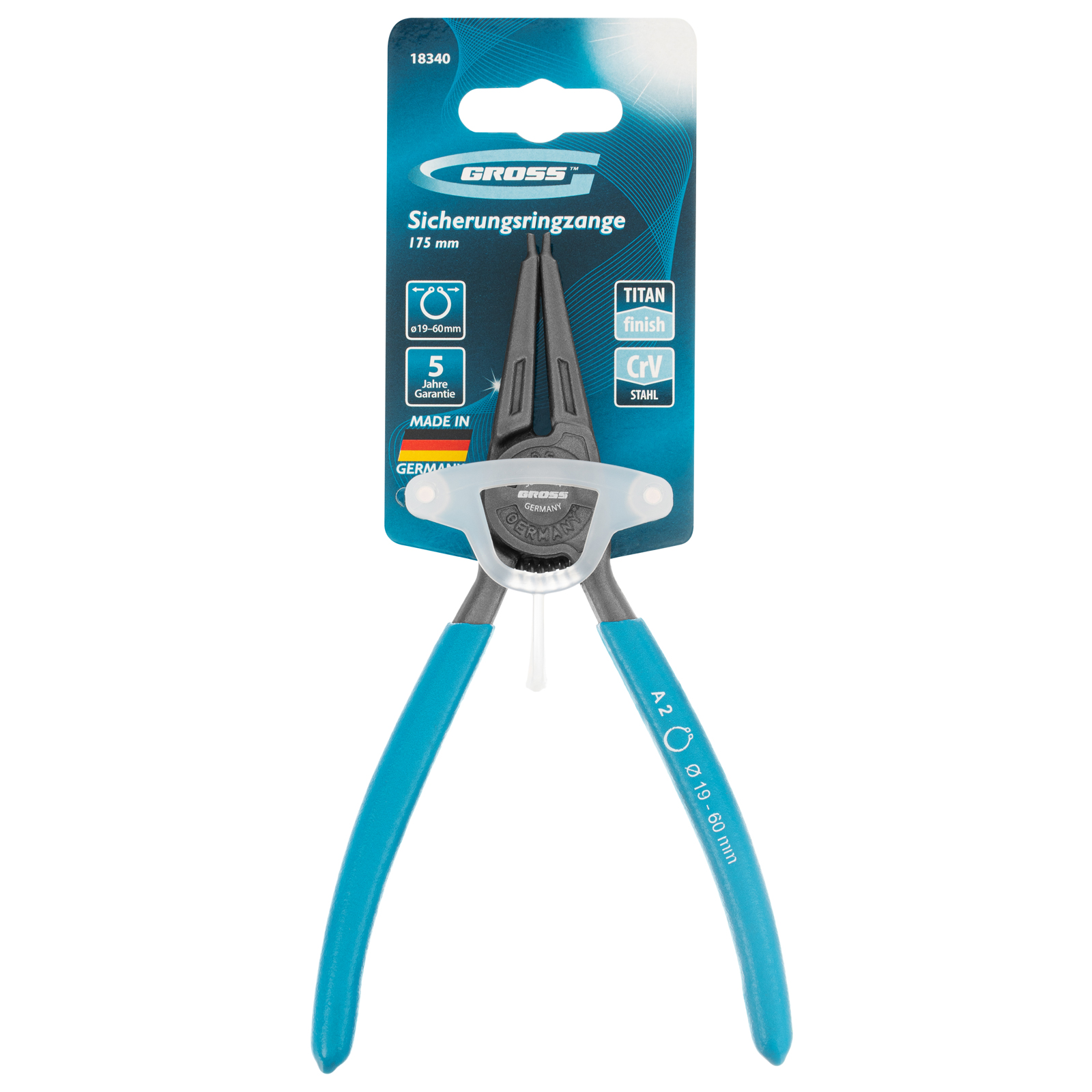 Съемник Gross 18340 длиной 175 мм, с прямыми губками, предназначен для разжима внешних стопорных колец диаметром 19-60 мм для дальнейшей установки их на вал механизма или снятия с него. Съемник применяют для колец с отверстиями — в них вставляются наконечники диаметром 1,8 мм. Инструмент будет полезен в мастерской, автосервисе, а также дома, в гараже или на даче.