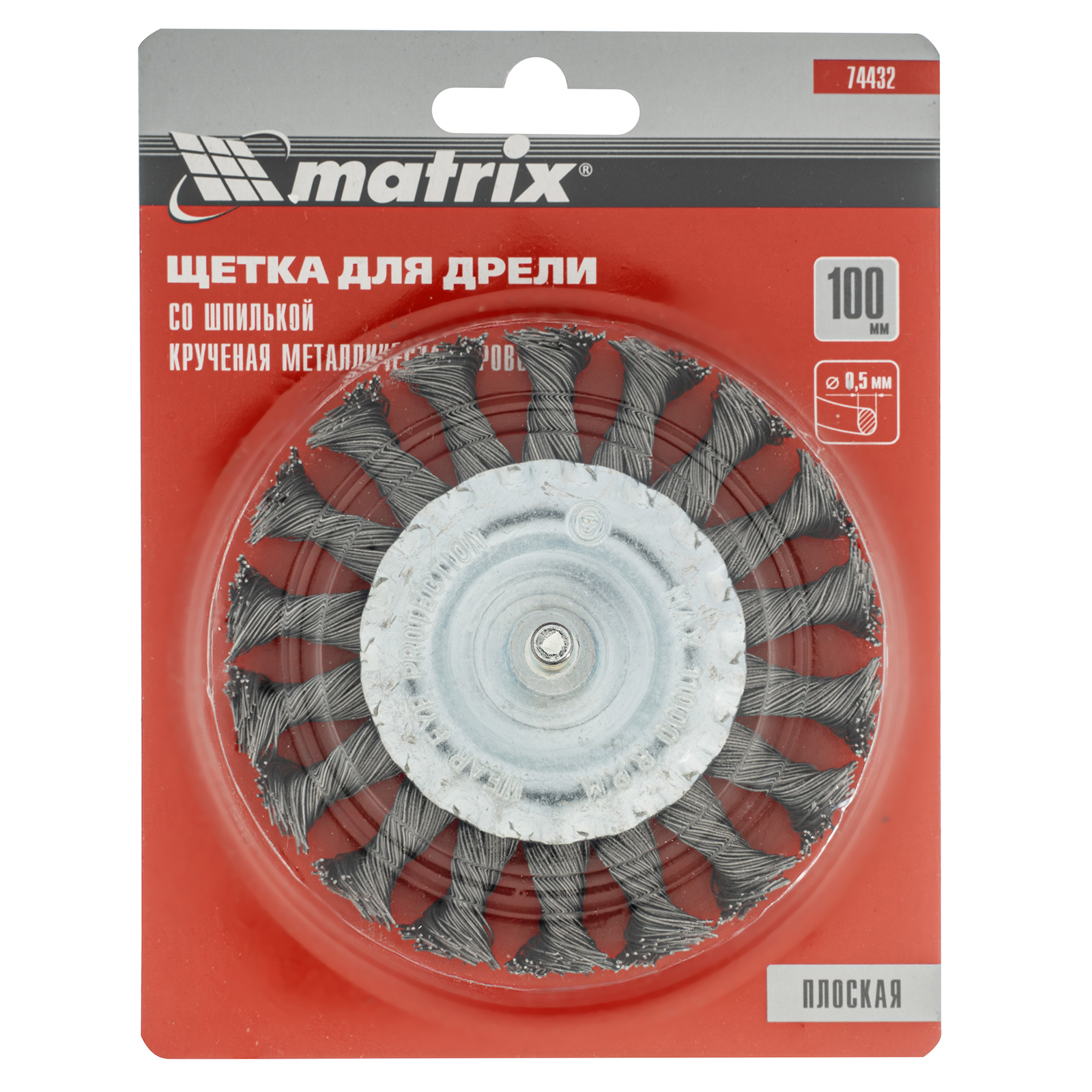 Щетка для дрели, 100 мм, плоская со шпилькой, крученая металлическая проволока Matrix в Уфе