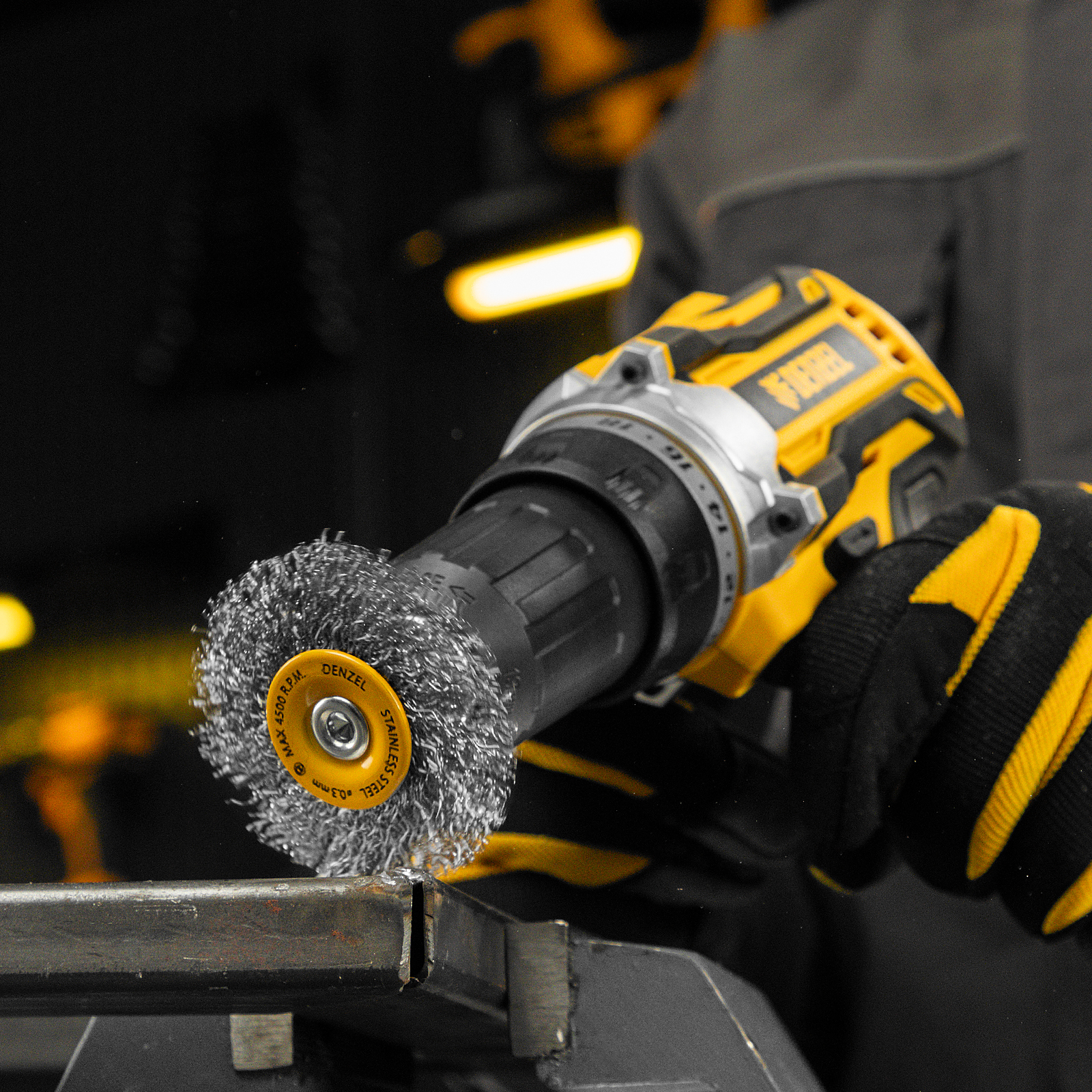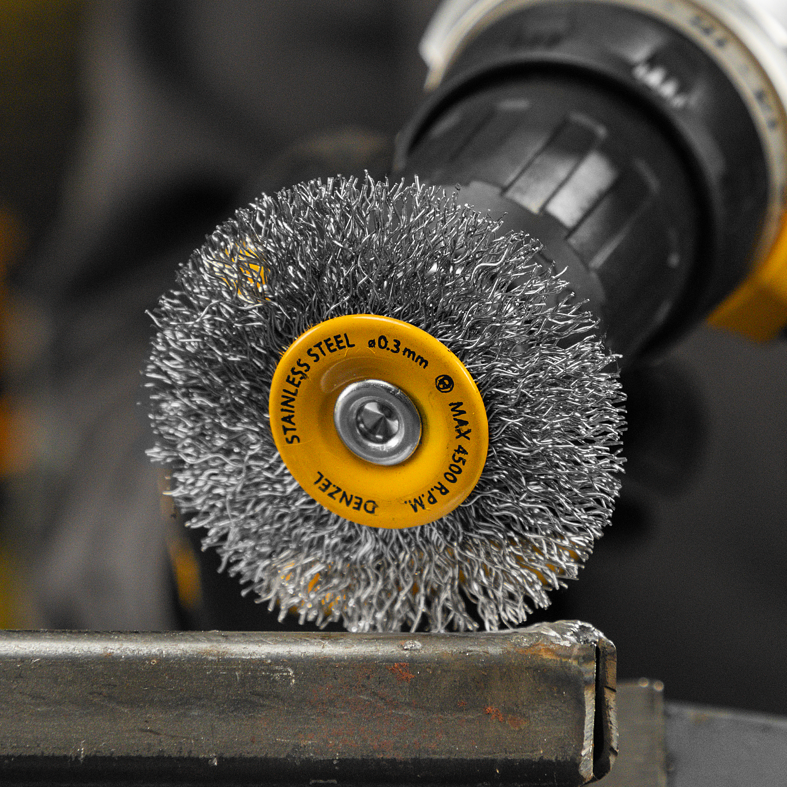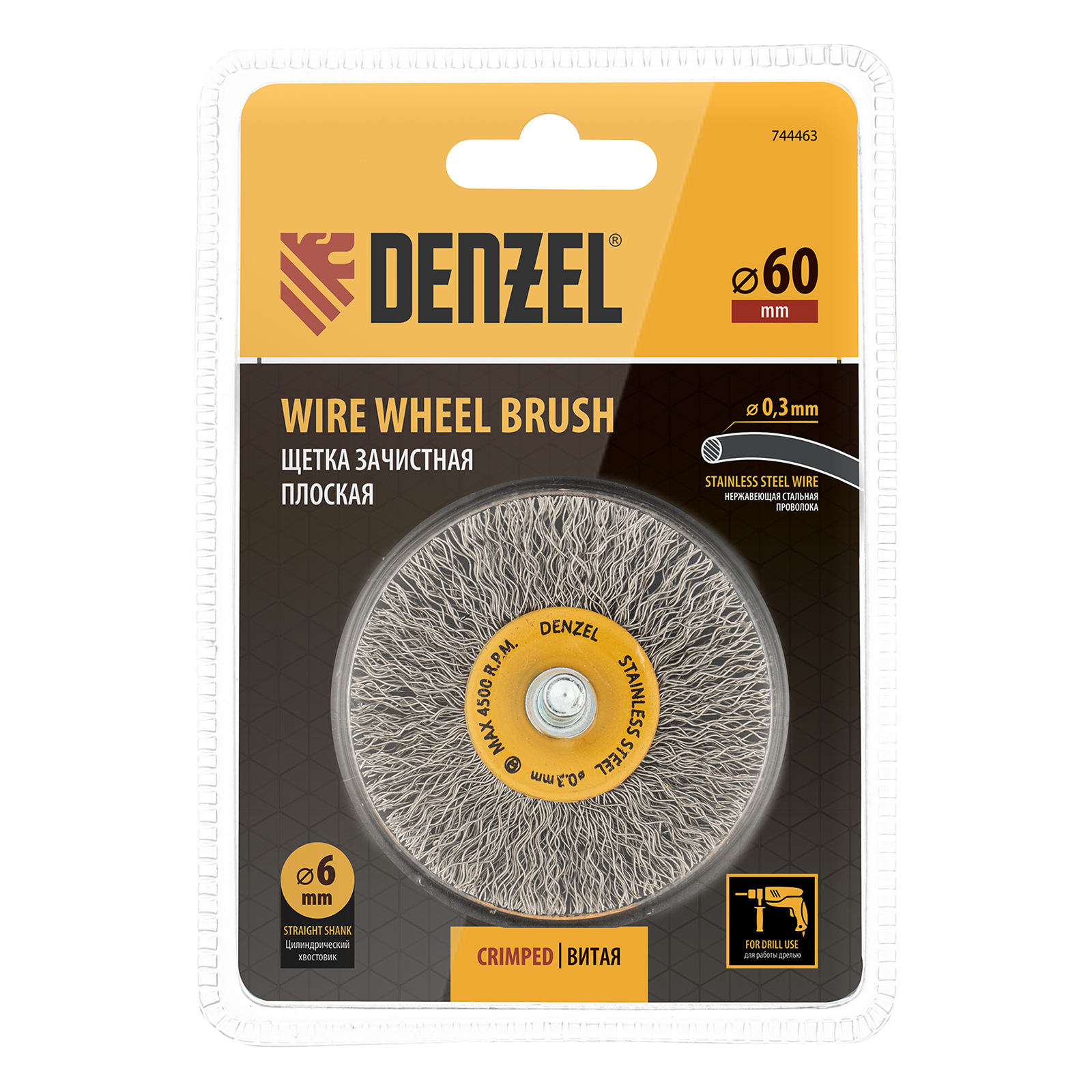 Щетка для дрели, 60 мм, Плоская, со шпилькой, нержавеющая витая проволока Denzel в Уфе