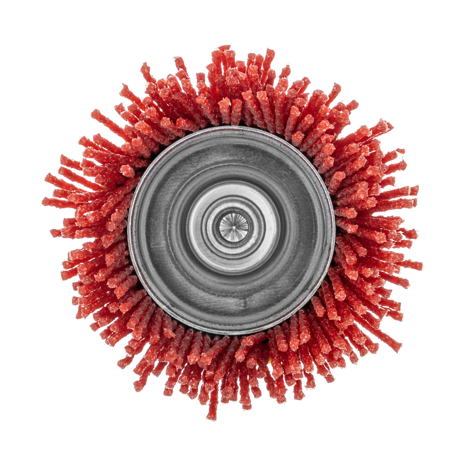 Щетка Denzel 74435 в форме чашки диаметром 65 мм, со шпилькой и нейлоновой щетиной, — насадка для дрели, предназначенная для выполнения шлифовальных работ по пластику, древесине, стали и цветным металлам. Щетина изготовлена из высококачественного нейлона с нанесенным абразивом из оксида алюминия. Щетка оптимальна для деликатного удаления загрязнений, краски, пятен ржавчины с твердых поверхностей. Позволяет придать шероховатость поверхности, подходит для браширования древесины. Насадка удобна для обработки плоских деталей большой площади.