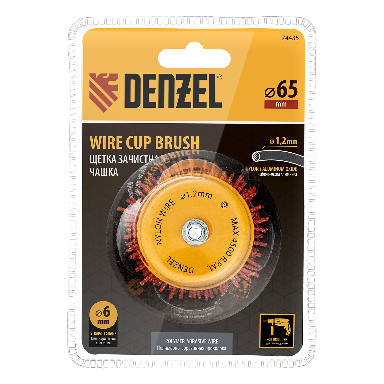 Щетка для дрели, 65 мм, Чашка, со шпилькой, нейлоновая щетина Denzel в Уфе
