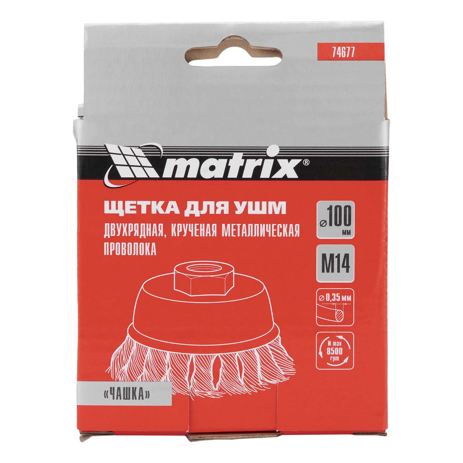 Щетка для УШМ, 100 мм, М14, "чашка", двухрядная, крученая проволока 0.35 мм Matrix в Уфе