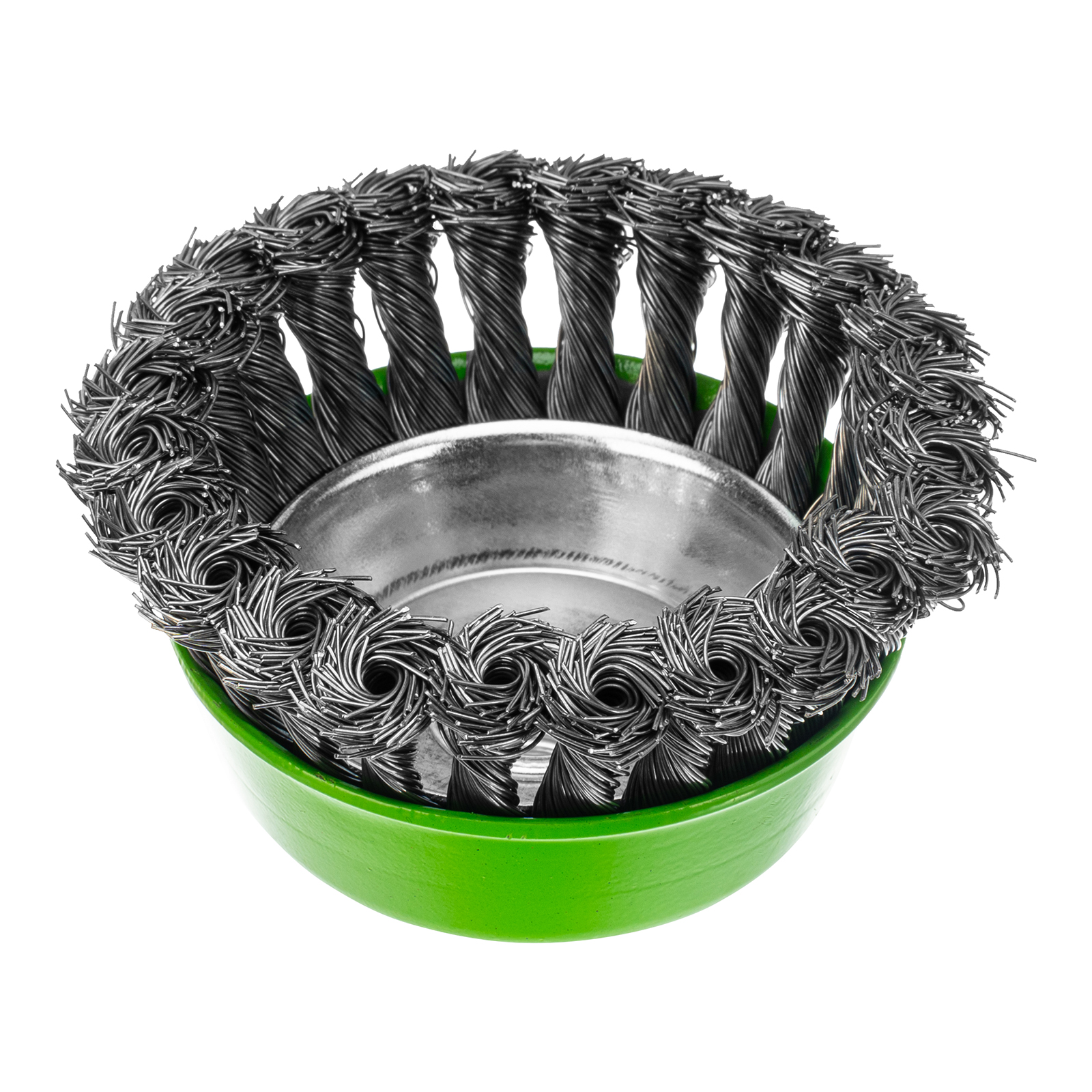 Щетка Сибртех «Чашка» 746287 диаметром 100 мм, с присоединительной резьбой М14, с щетиной из крученой проволоки диаметром 0,5 мм, устанавливается на УШМ, поддерживающую работу со скоростью 8500 об/мин. Изделие предназначено для грубой (черновой) обработки поверхностей и подходит для удаления загрязнений, снятия толстого слоя ржавчины, ЛКМ, зачистки сварных швов.