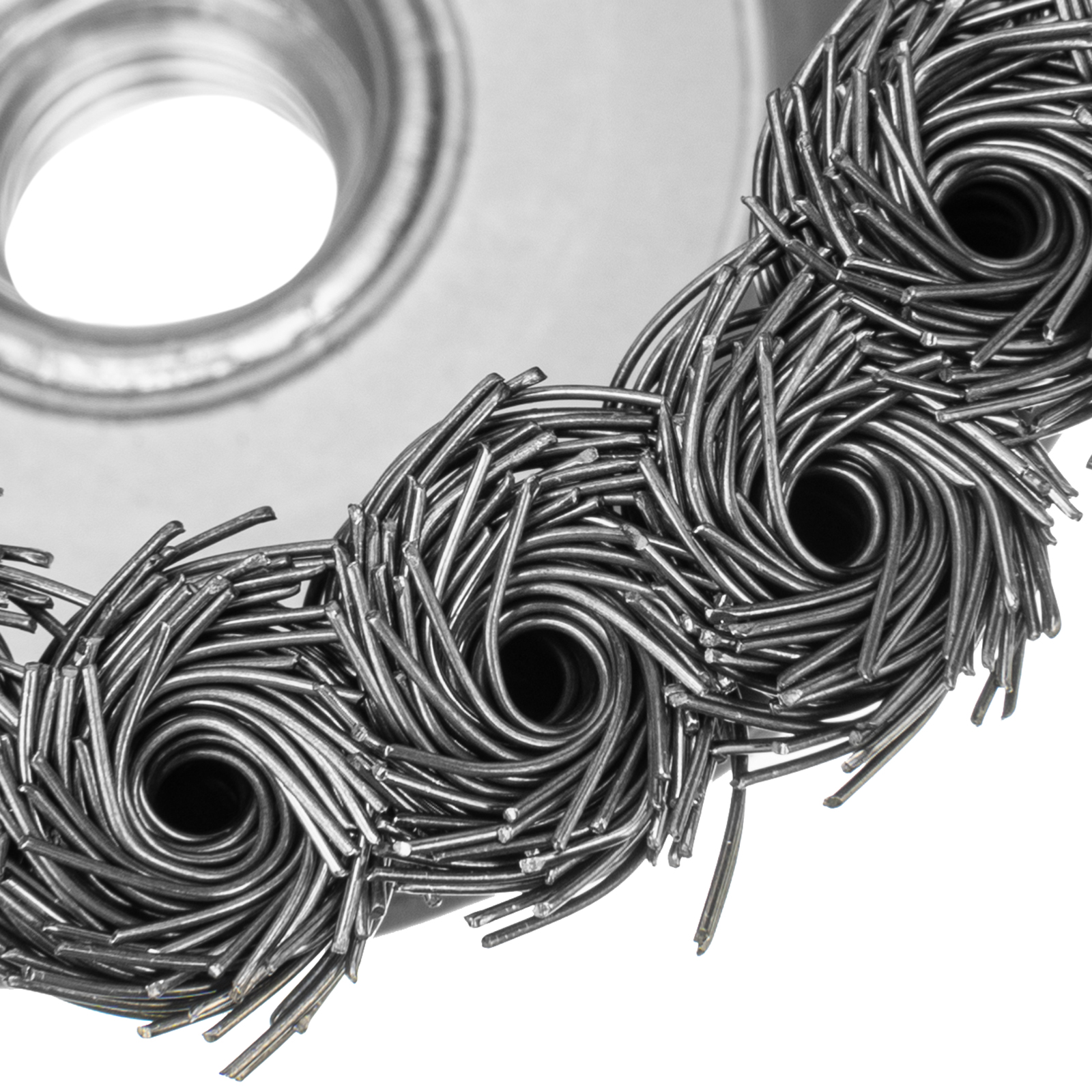 - Универсальность — щетка подходит для обработки любых твердых материалов: металла, древесины, цветных металлов, пластика и т. д.