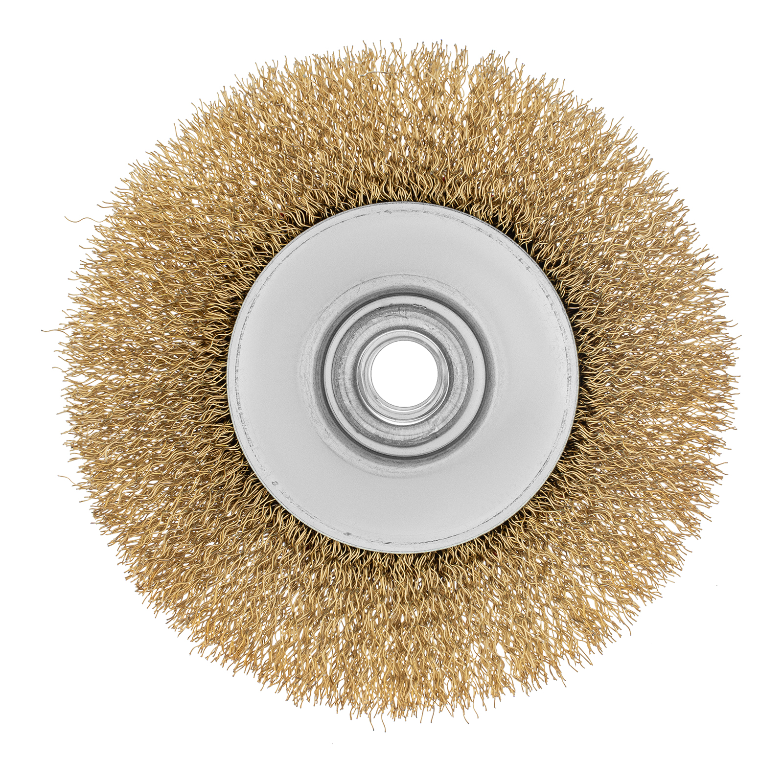 Щетка Matrix «тарелка» 74612 диаметром 115 мм, с щетиной из латунированной витой проволокой и гайкой М14,— насадка для УШМ, использующаяся для удаления с поверхностей ржавчины и загрязнений, старого слоя ЛКМ. Рекомендованная скорость вращения — не более 12500 об/мин. Щетка является универсальным инструментом, позволяющим обрабатывать как большие плоские поверхности, так и углы.