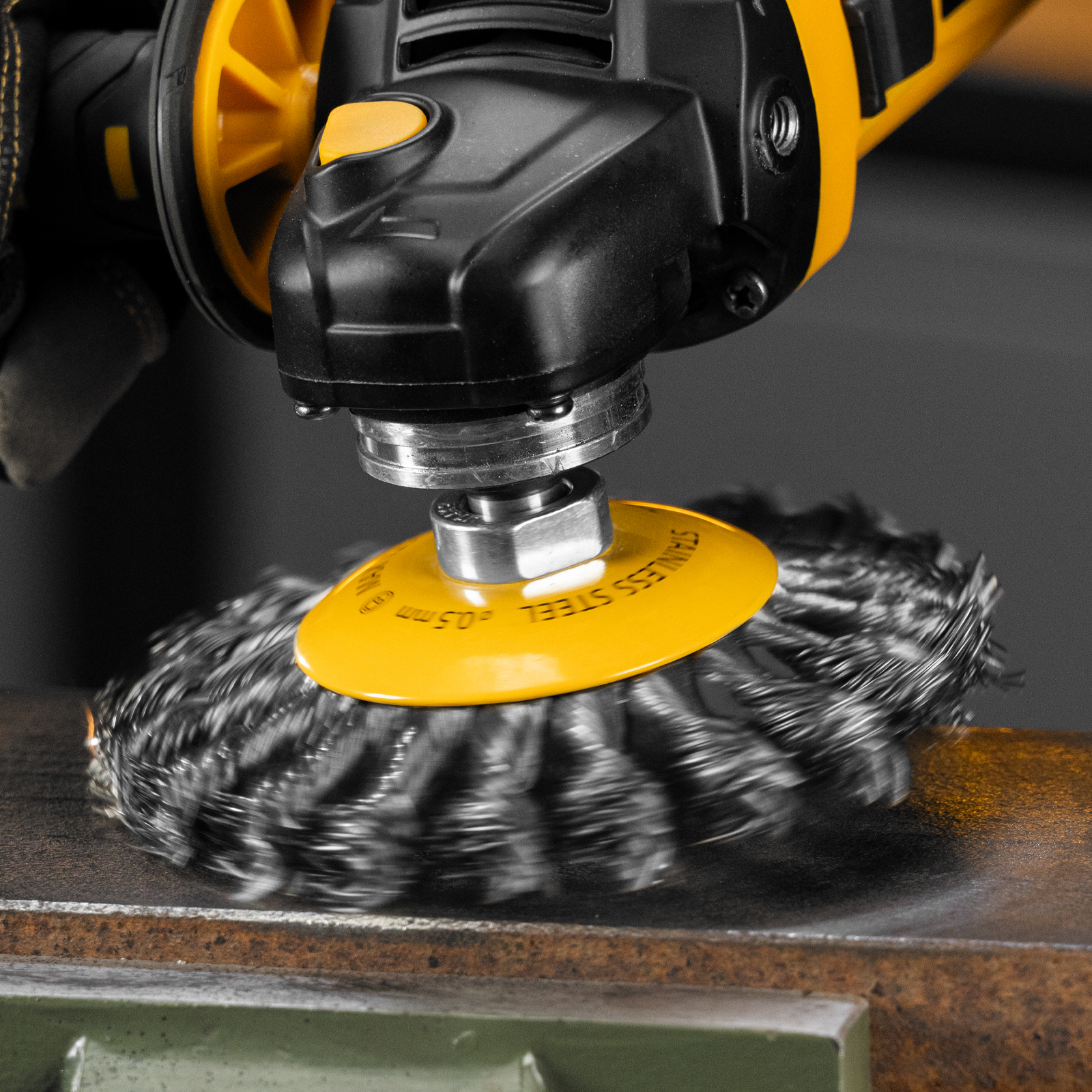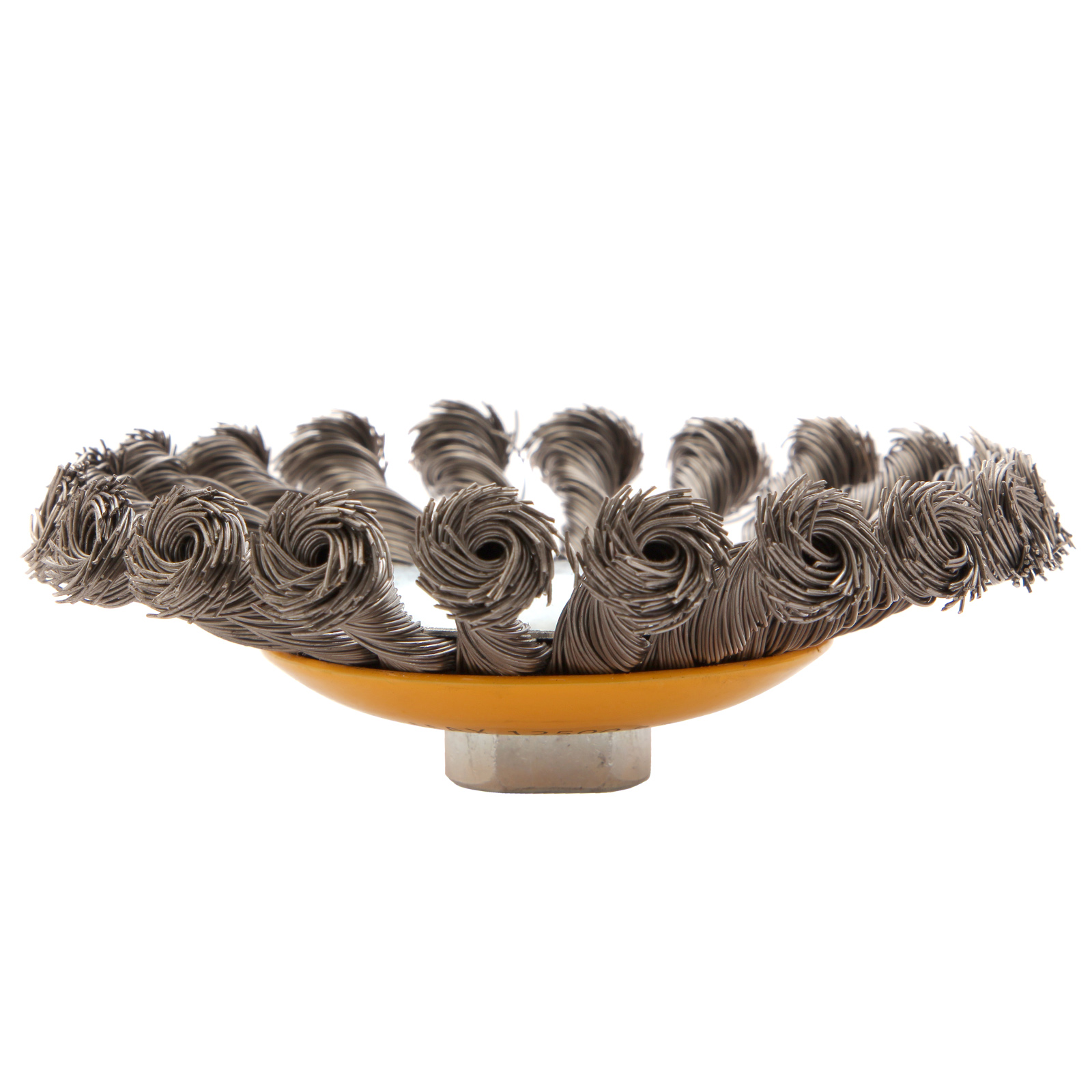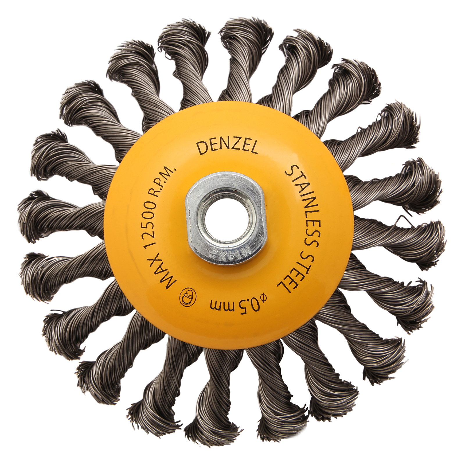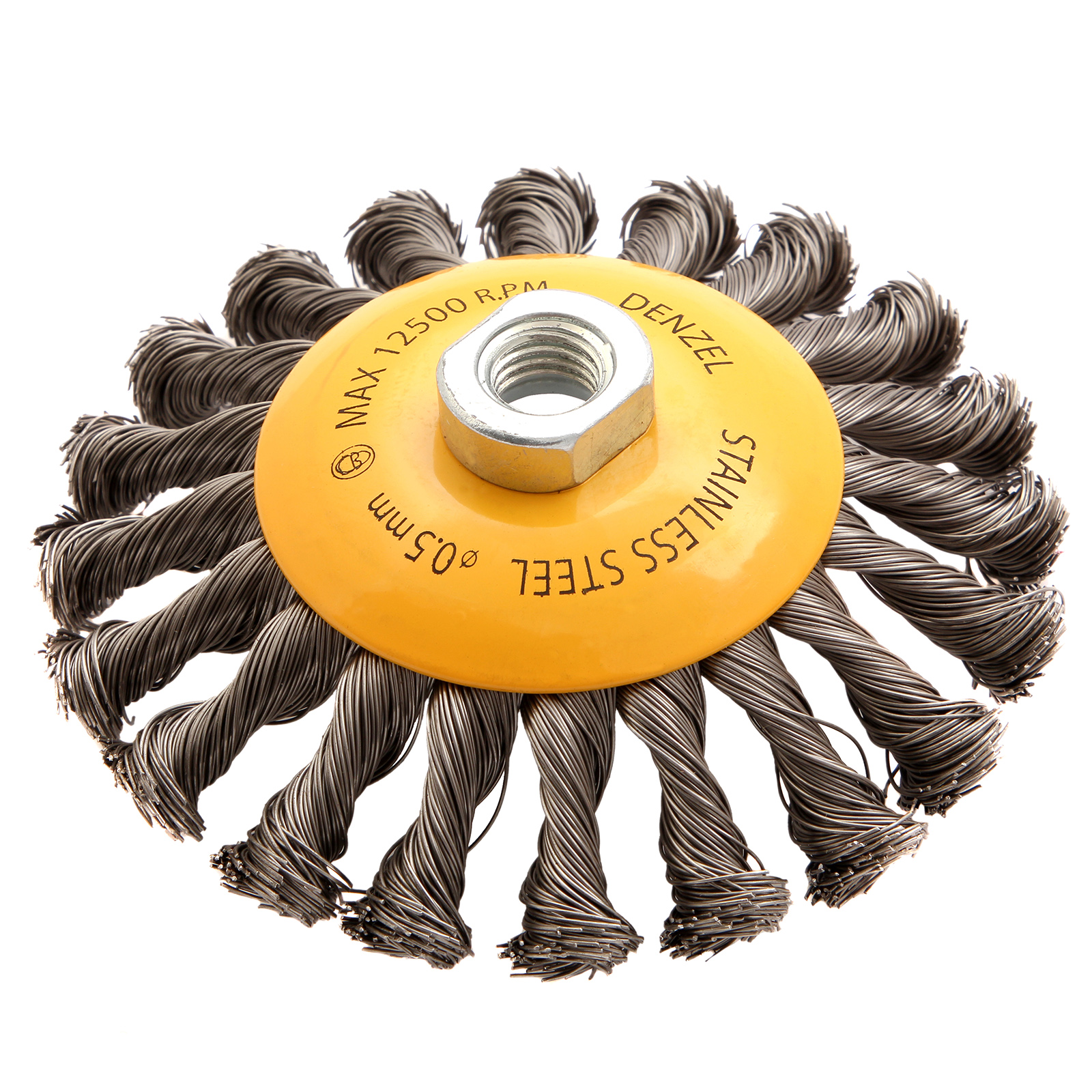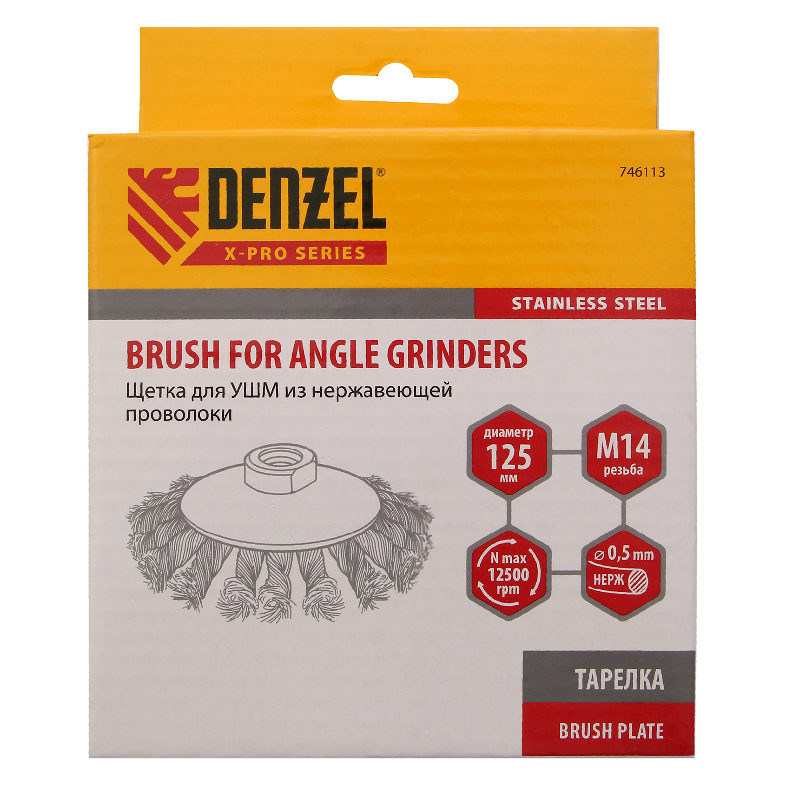 Щетка для УШМ, 125 мм, "Тарелка", крученая нержавеющая проволока 0.5 мм, М14 Denzel в Уфе