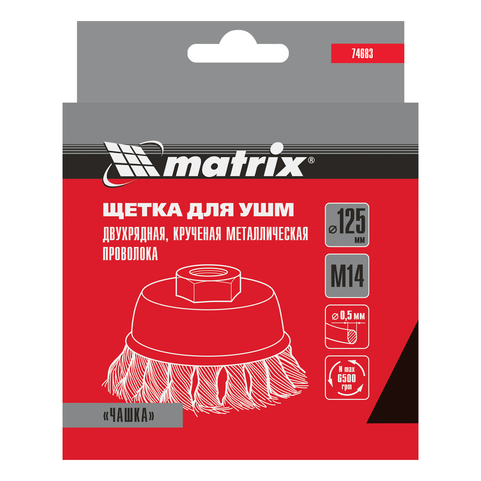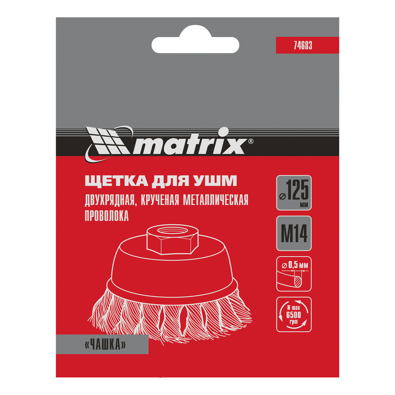Щетка для УШМ, 125 мм, М14, "чашка", двухрядная, крученая проволока 0.5 мм Matrix в Уфе