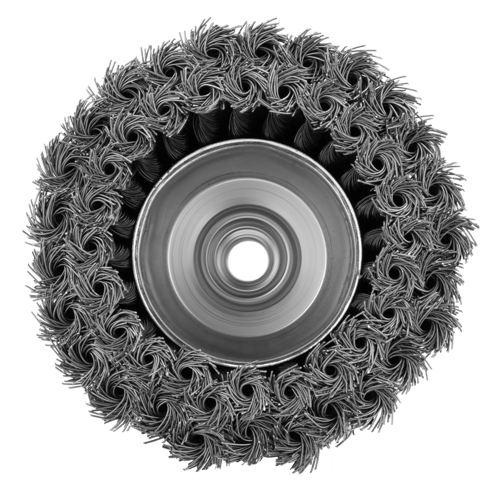 - Универсальность — щеткой можно обрабатывать любые твердые материалы: металл (в том числе цветной), древесину, пластик и т. д.