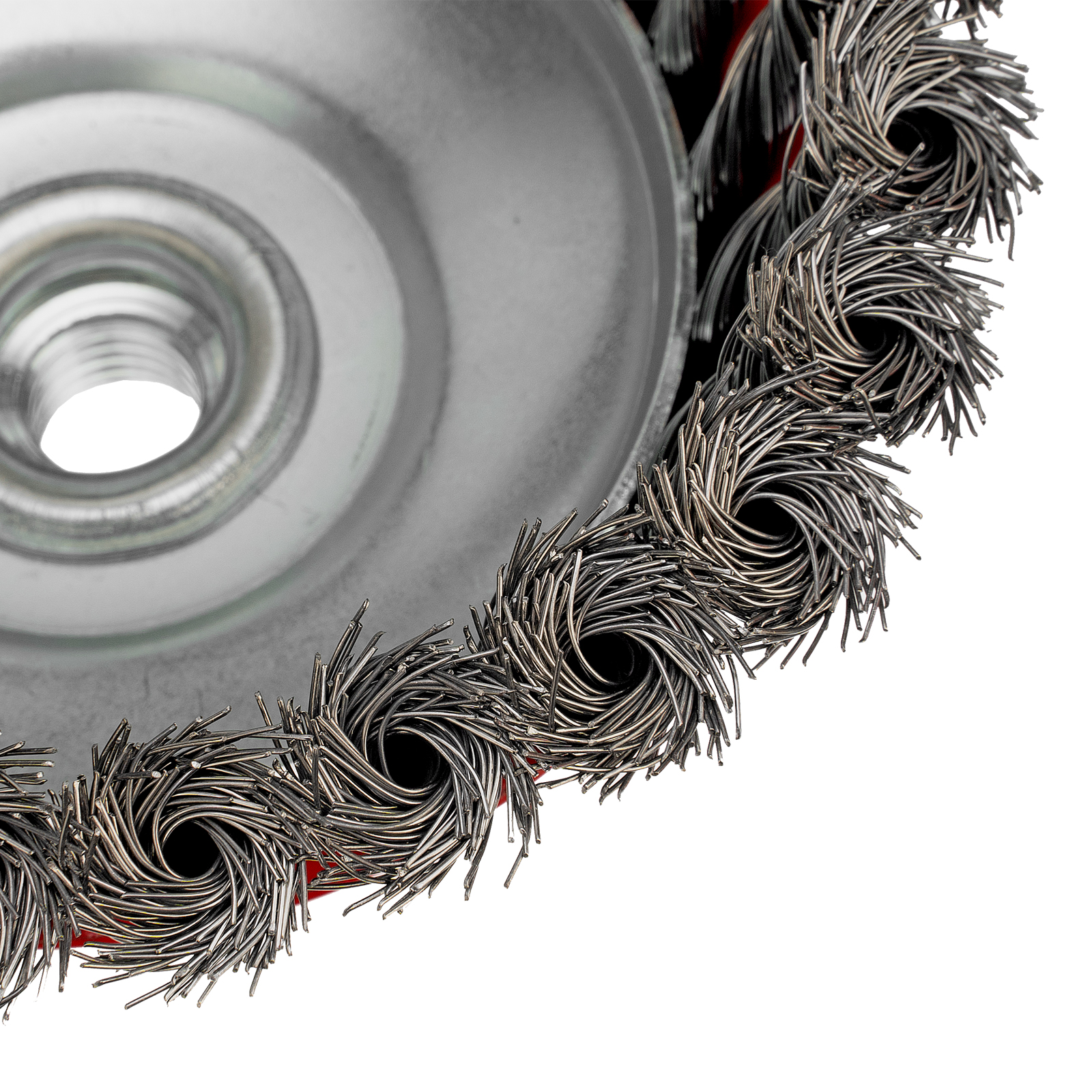 Щетка Matrix «Чашка» 74617 диаметром 125 мм, с присоединительной резьбой М14, с щетиной из крученой проволоки диаметром 0,35 мм, устанавливается на УШМ, поддерживающую работу со скоростью 6500 об/мин. Щетина предназначена для грубой (черновой) обработки поверхностей, менее агрессивной по сравнению с щетиной 0,5 мм. Изделие подходит для удаления загрязнений, снятия толстого слоя ржавчины, ЛКМ, зачистки сварных швов.