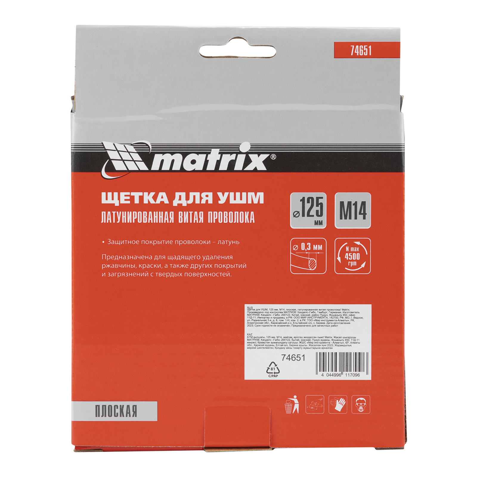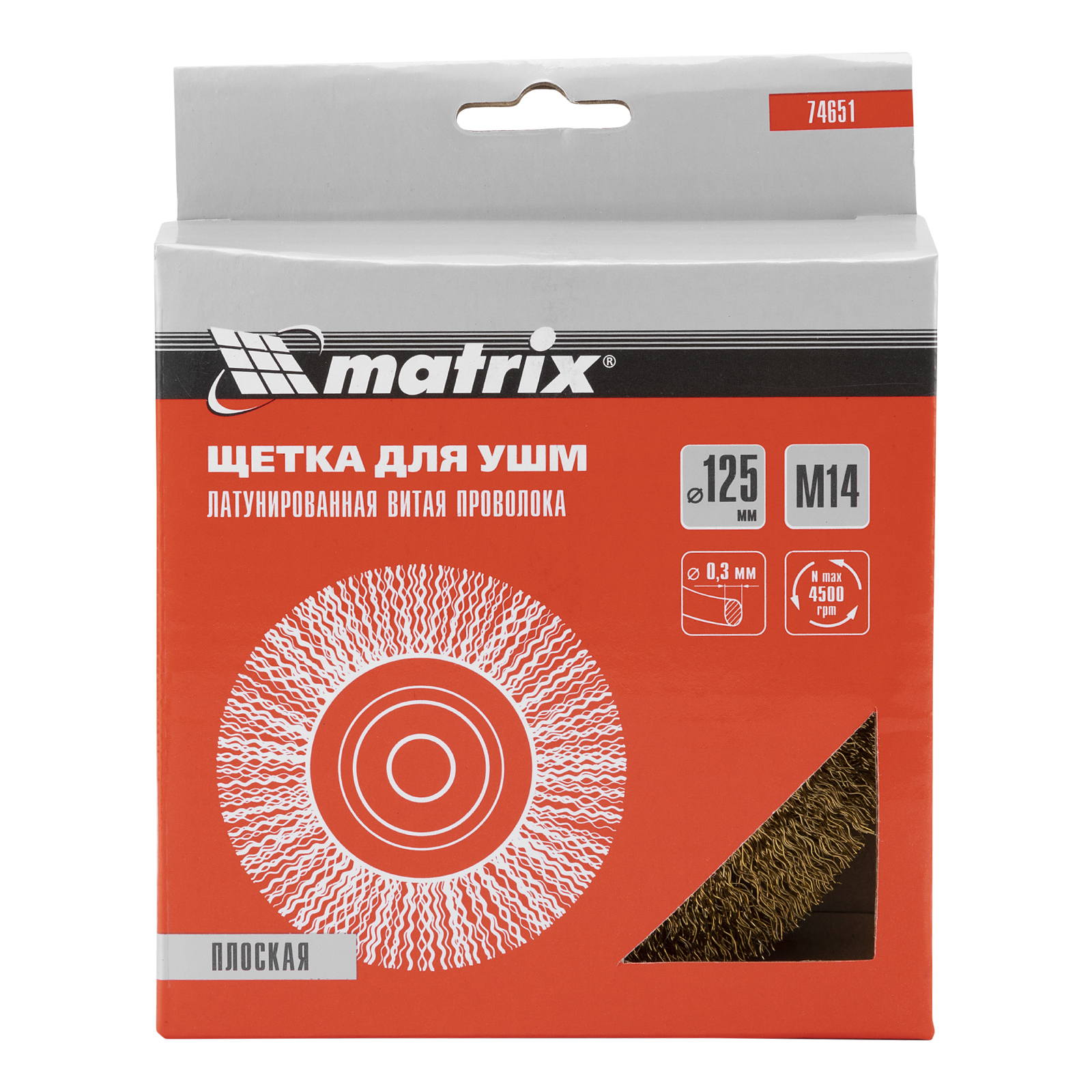 Щетка для УШМ, 125 мм, М14, плоская, латунированная витая проволока Matrix в Уфе