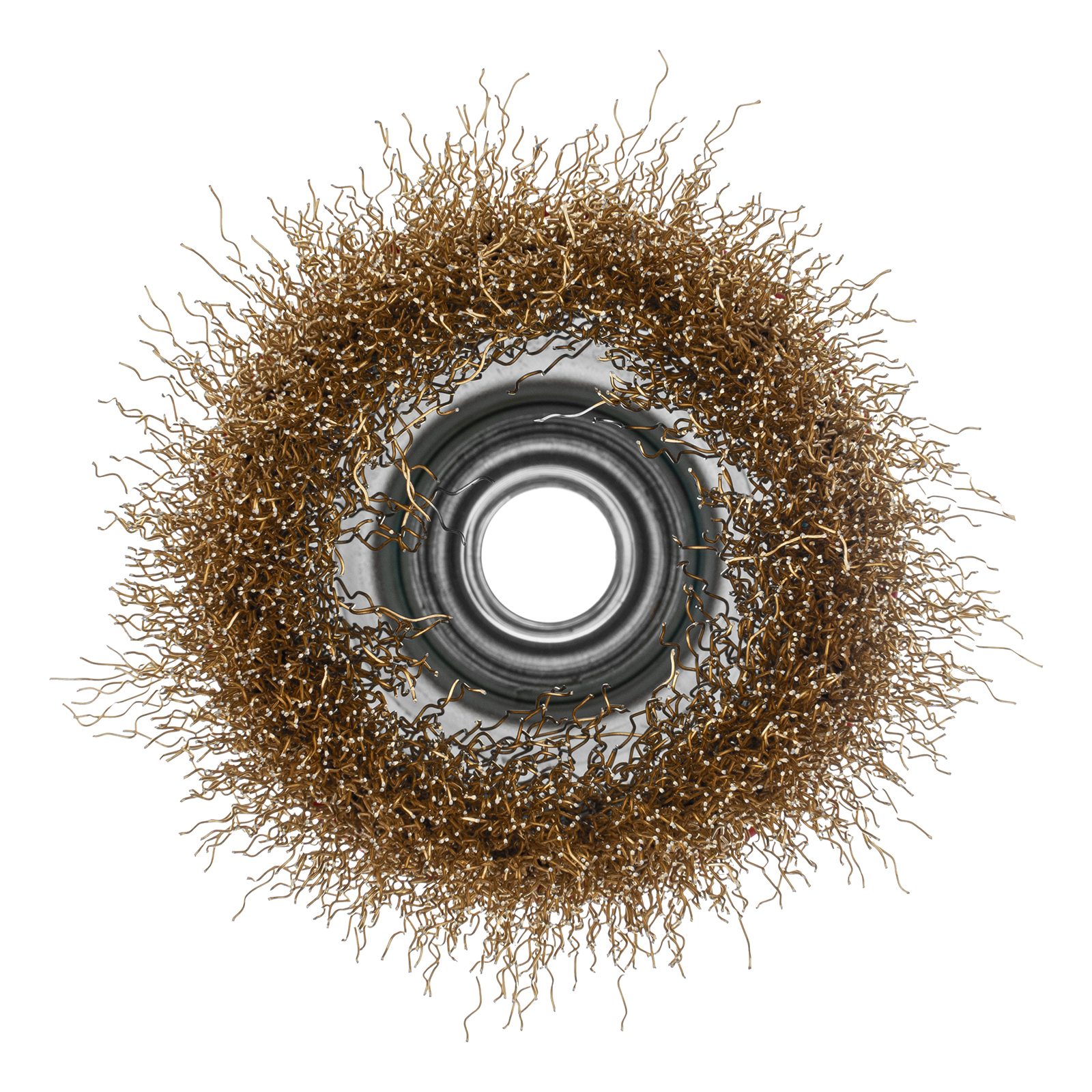 Щетка «чашка» Matrix 74604 диаметром 75 мм, с щетиной из латунированной витой проволоки, устанавливается на вал УШМ с помощью гайки М14. Предназначена для снятия тонкого слоя краски или лака, удаления ржавчины и загрязнений. При рекомендованной скорости вращения 12500 об/мин щеткой можно быстро обрабатывать участки большой площади.