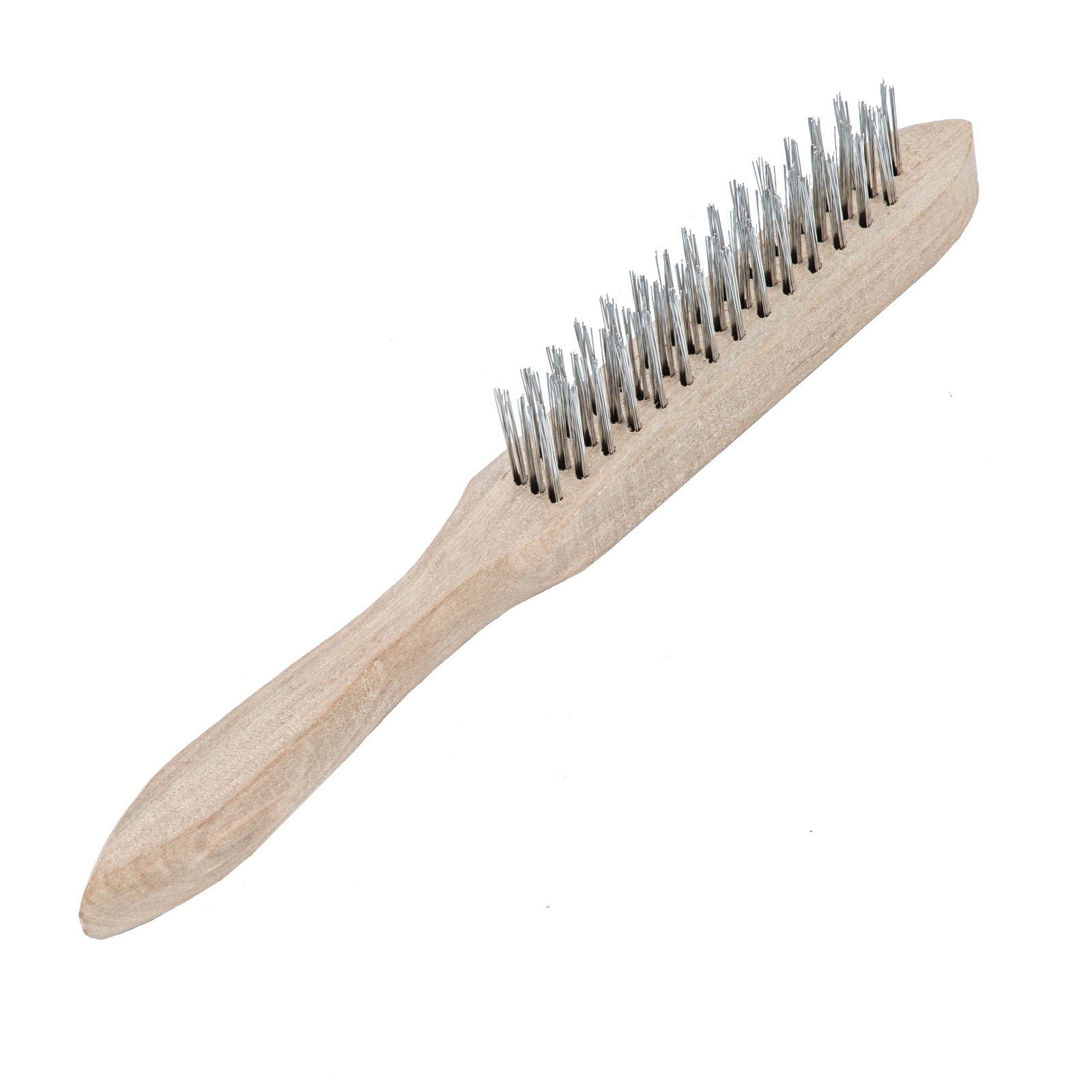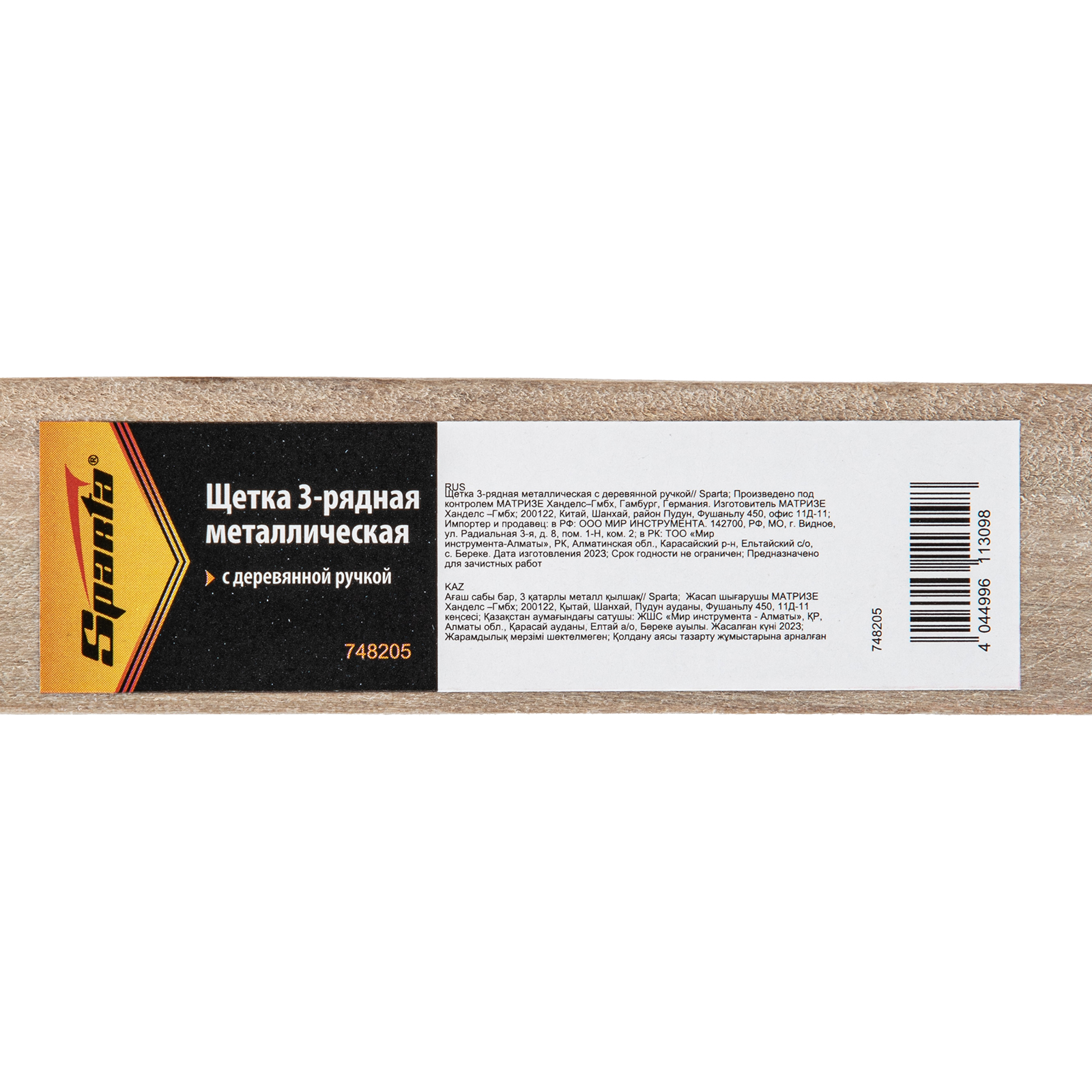 Металлическая трехрядная щетка Sparta 748205 с деревянной ручкой — инструмент для ручного удаления ржавчины, грязи, остатков краски с металлических, деревянных и других поверхностей. Трехрядная щетина обеспечивает качественную обработку. Щеткой пользуются строители, ремонтники, специалисты по кузовному ремонту, пригодится она и в быту.