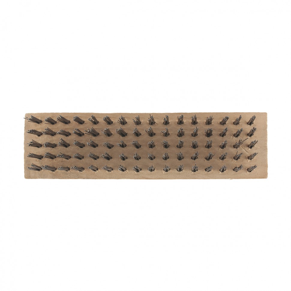 Плоская зачистная 5-рядная щетка Сибртех 74810 с деревянным корпусом и щетиной из закаленной прямой проволоки — ручной инструмент, позволяющий очистить поверхность от заусенцев, загрязнений, ржавчины, остатков штукатурки и лакокрасочного слоя. Расположенный в 5 рядов ворс обеспечивает эффективное воздействие на обрабатываемую поверхность. Щетка подходит для обработки металла, древесины, пластика и сварных швов. Используется в строительстве, авторемонтном деле, будет полезна во время ремонта и в быту.
