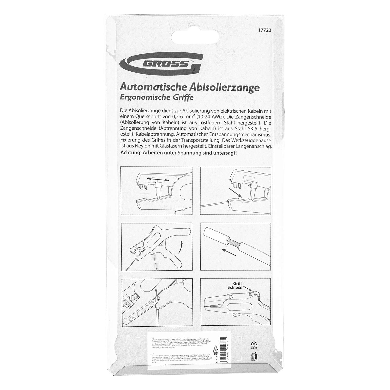 Щипцы для зачистки электропроводов 0.2-6 мм2 (10-24 AWG) лезвие: нержавеющая сталь Gross в Уфе
