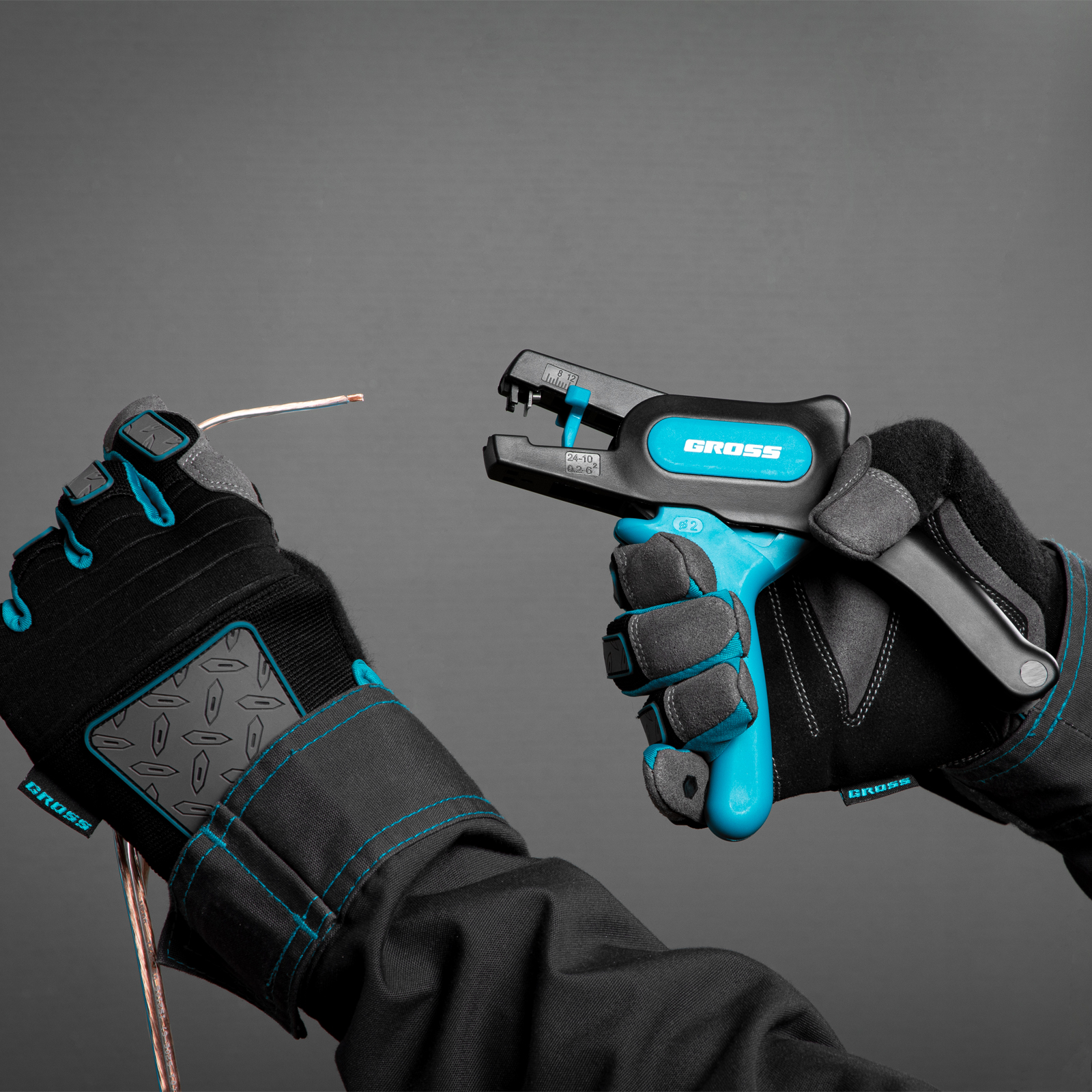 Щипцы для зачистки электропроводов Gross 17722 с лезвиями из нержавеющей стали предназначены для электромонтажных работ с проводами сечением 0,2-6 мм² (10-24 AWG). С их помощью можно обрезать и зачистить медные и алюминиевые провода. Инструмент пригодится для бытового и профессионального применения.