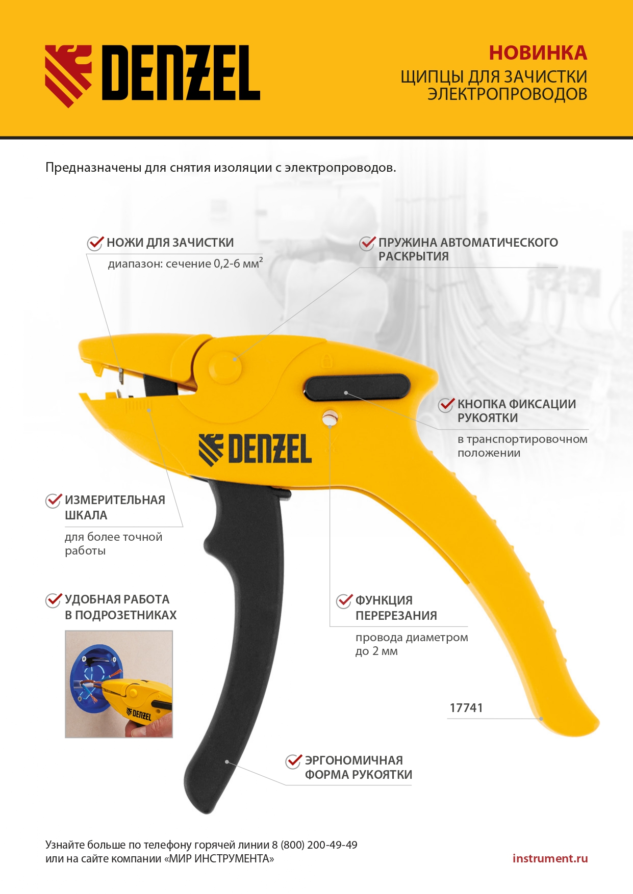 Щипцы для зачистки электропроводов, сечением 0,2-6 мм2, функция обрезания проводов Denzel в Уфе