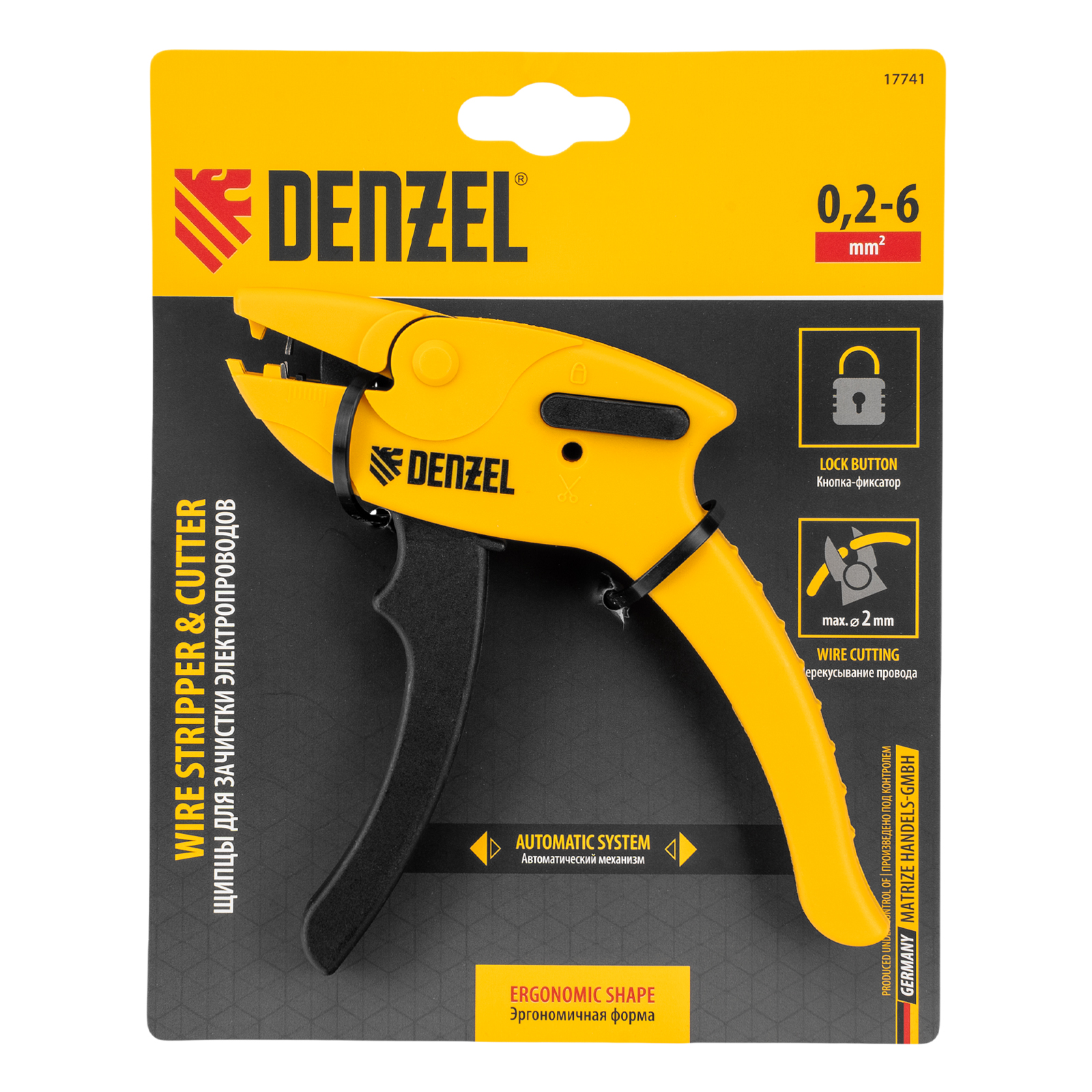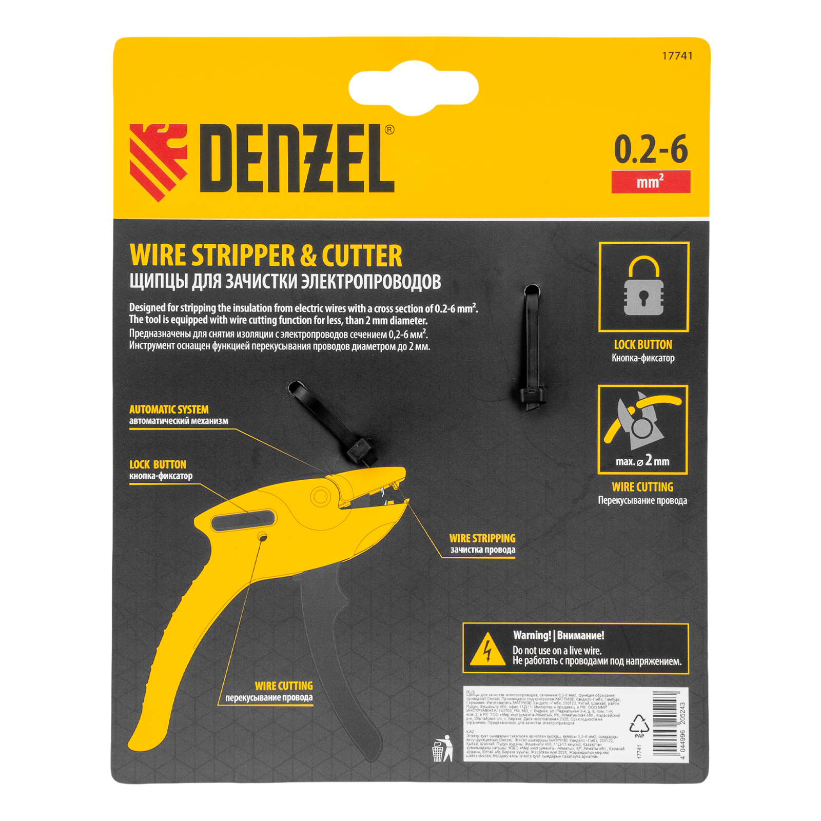 Щипцы Denzel 17741 предназначены для зачистки электропроводов сечением 0,2-6 кв. мм (10-24 AWG) и имеют дополнительную функцию обрезания проводов диаметром до 2 мм. Форма инструмента облегчает работу в труднодоступных местах, поэтому он оптимален для установки подрозетников. Щипцы пригодятся начинающим мастерам и профессионалам для проведения электромонтажных работ.