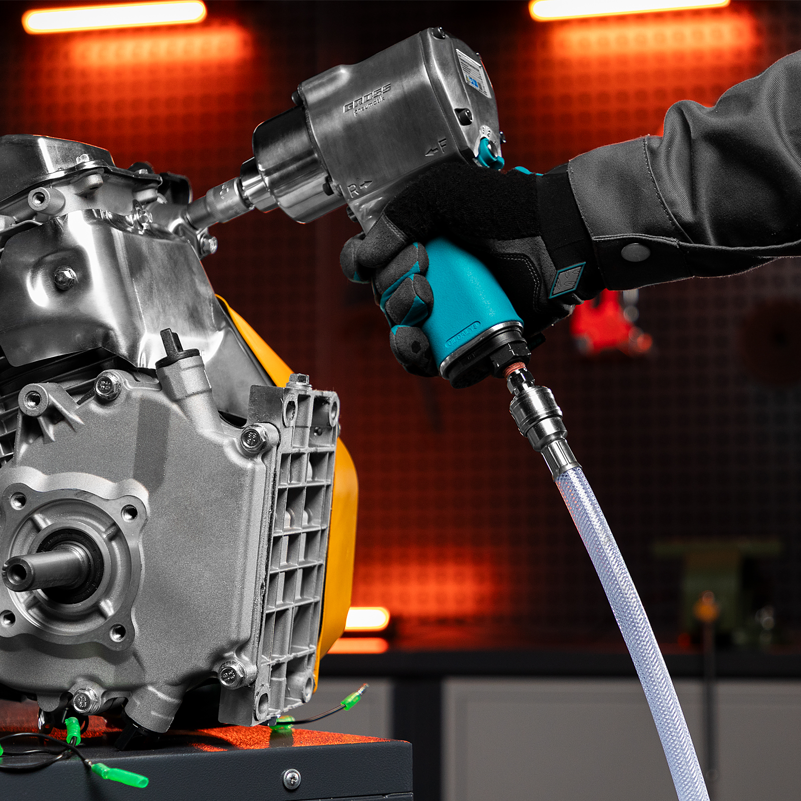 - Шланг можно быстро подключить к компрессору и пневматическим инструментам благодаря быстросъемным соединениям типа рапид.