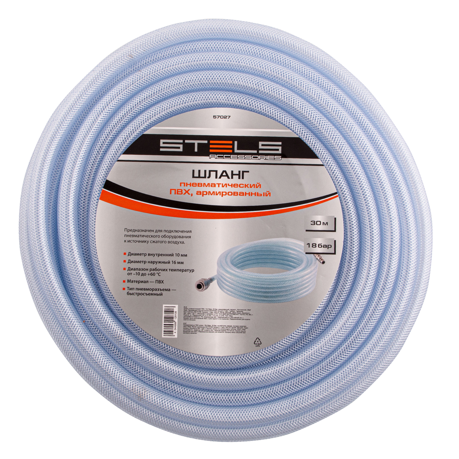 Шланг пневматический ПВХ, 10 x 16 мм, 18 бар, армированный, прозрачный, быстросъемное соединение, 30 м Stels в Уфе
