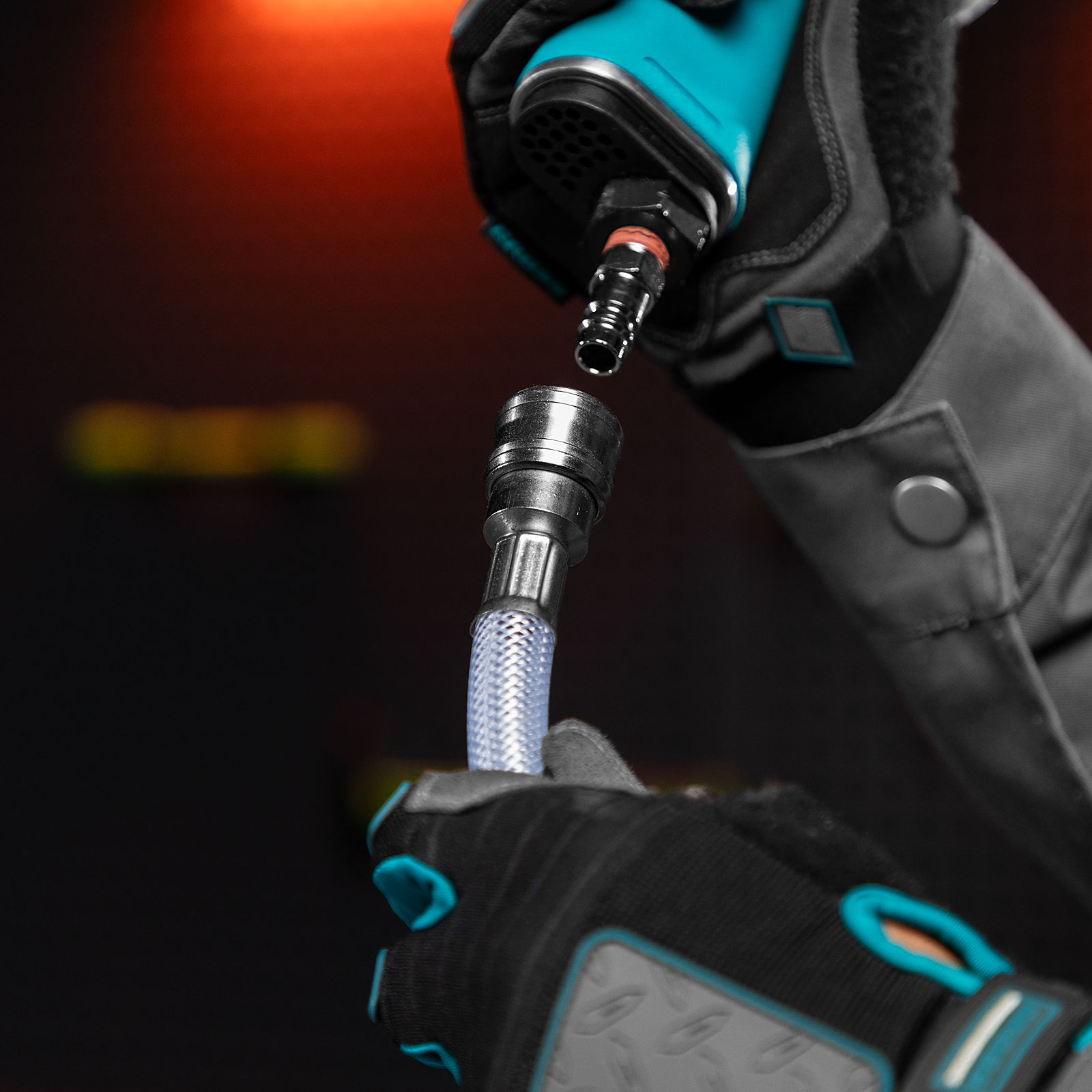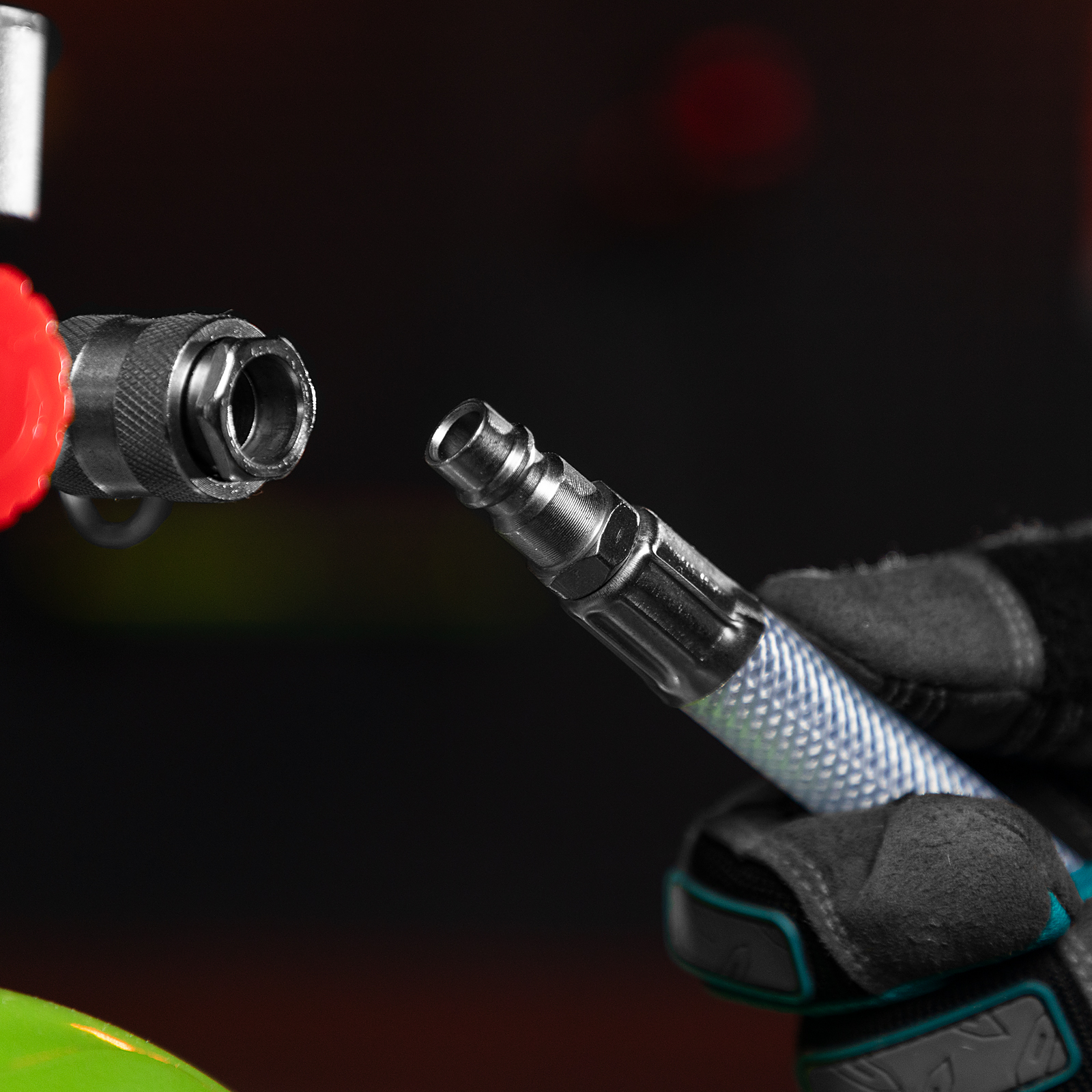 - Быстрая подготовка к работе — соединения типа «рапид» упрощают подключение шланга к компрессору и пневматическим инструментам.