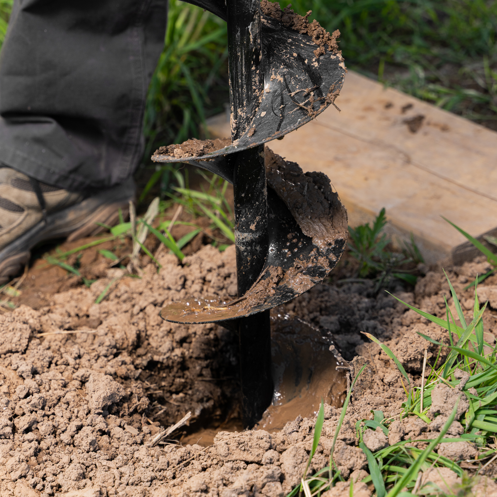 - Эффективная работа — усиленный забурник упрощает центрирование шнека, рабочая кромка с прецизионной заточкой легко разрезает грунт.