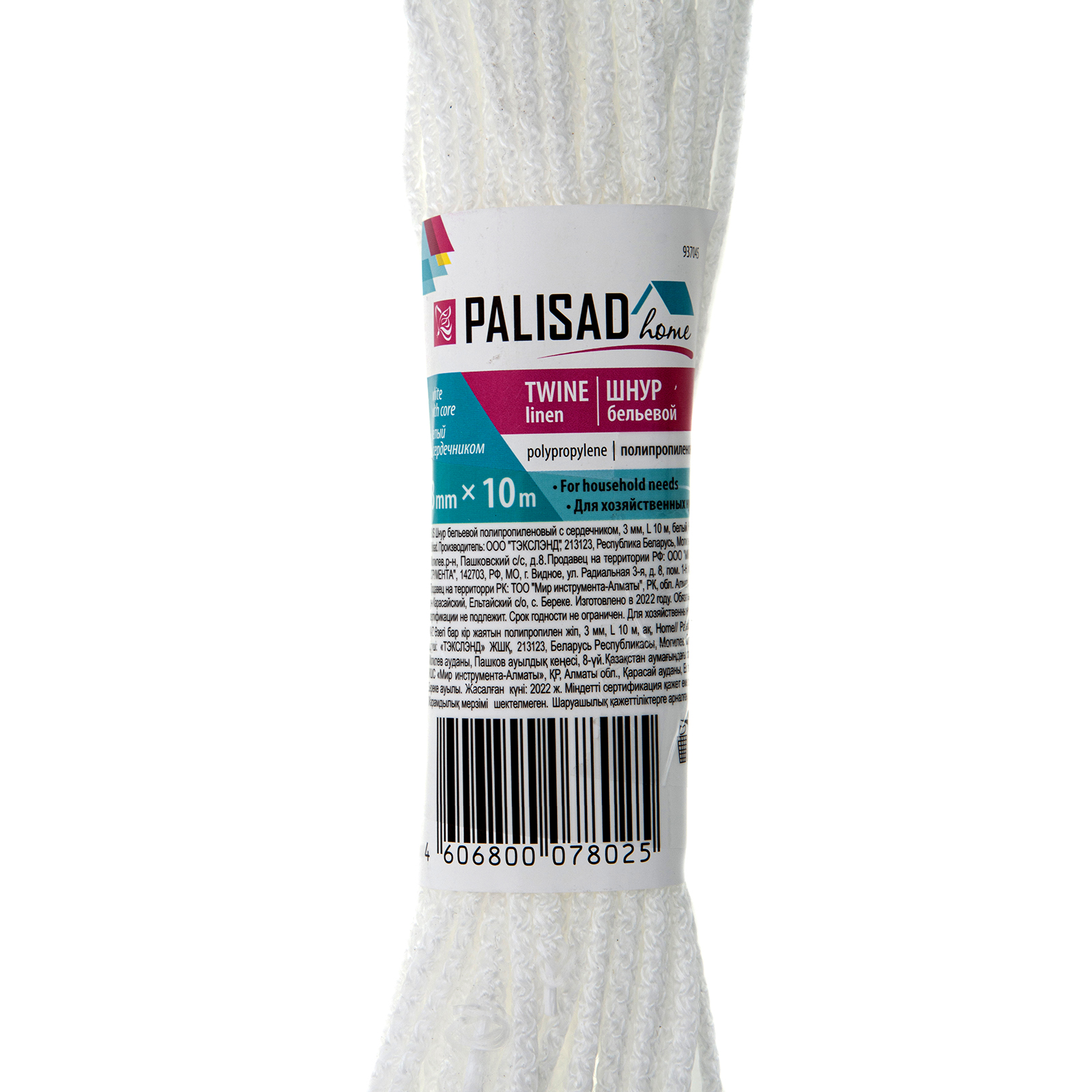 Шнур бельевой полипропиленовый с сердечником, 3 мм, L 10 м, белый, Home Palisad в Уфе