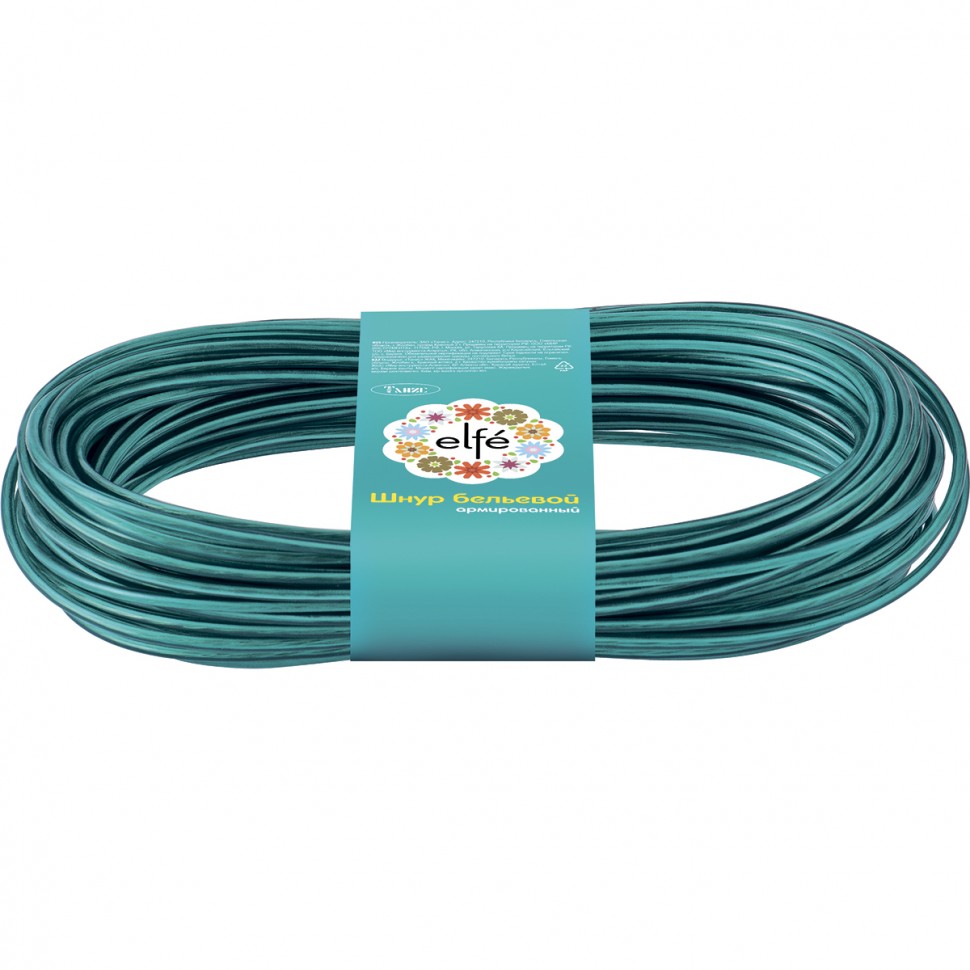 Особо прочный бельевой армированный шнур Elfe 93701, с полимерным покрытием ШХА, диаметром 2 мм и длиной 20 м, используется для сушки белья и будет полезен дома или на даче. В качестве сердечника использована стальная латунированная проволока, поэтому шнур не растягивается со временем, в отличие от обычной бельевой веревки.