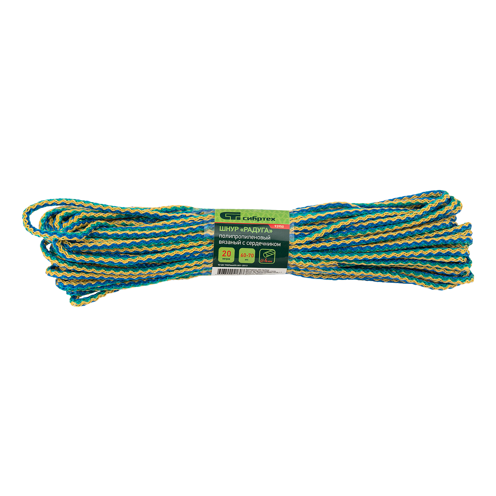Шнур вязаный полипропиленовый с серд."Радуга", 4 мм, L 20 м, Сибртех в Уфе