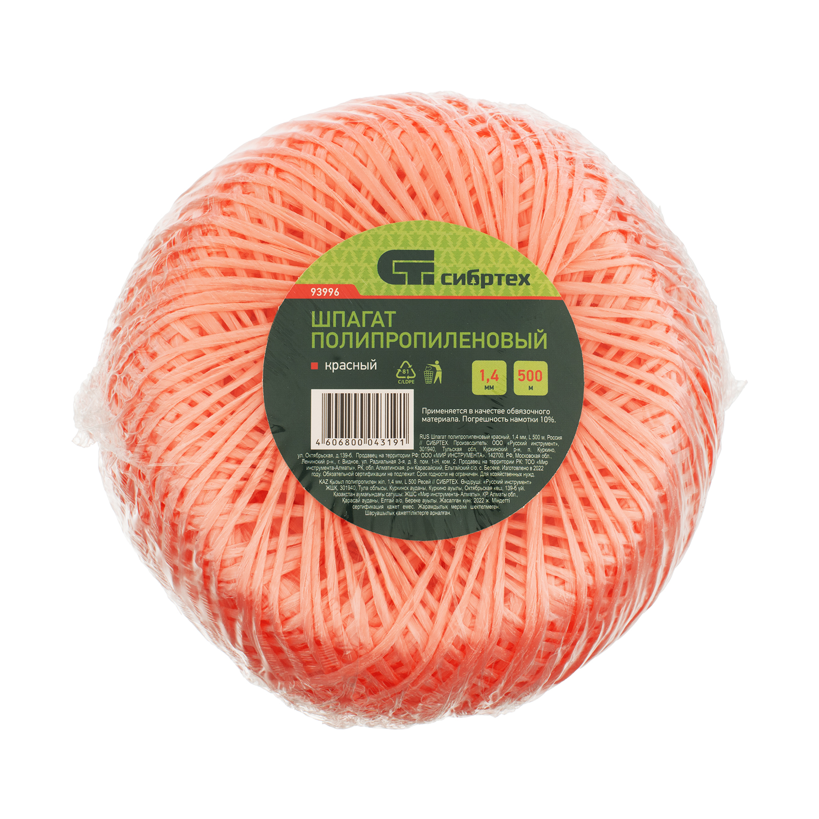 Шпагат полипропиленовый красный, 1.4 мм, L 500, Сибртех в Уфе