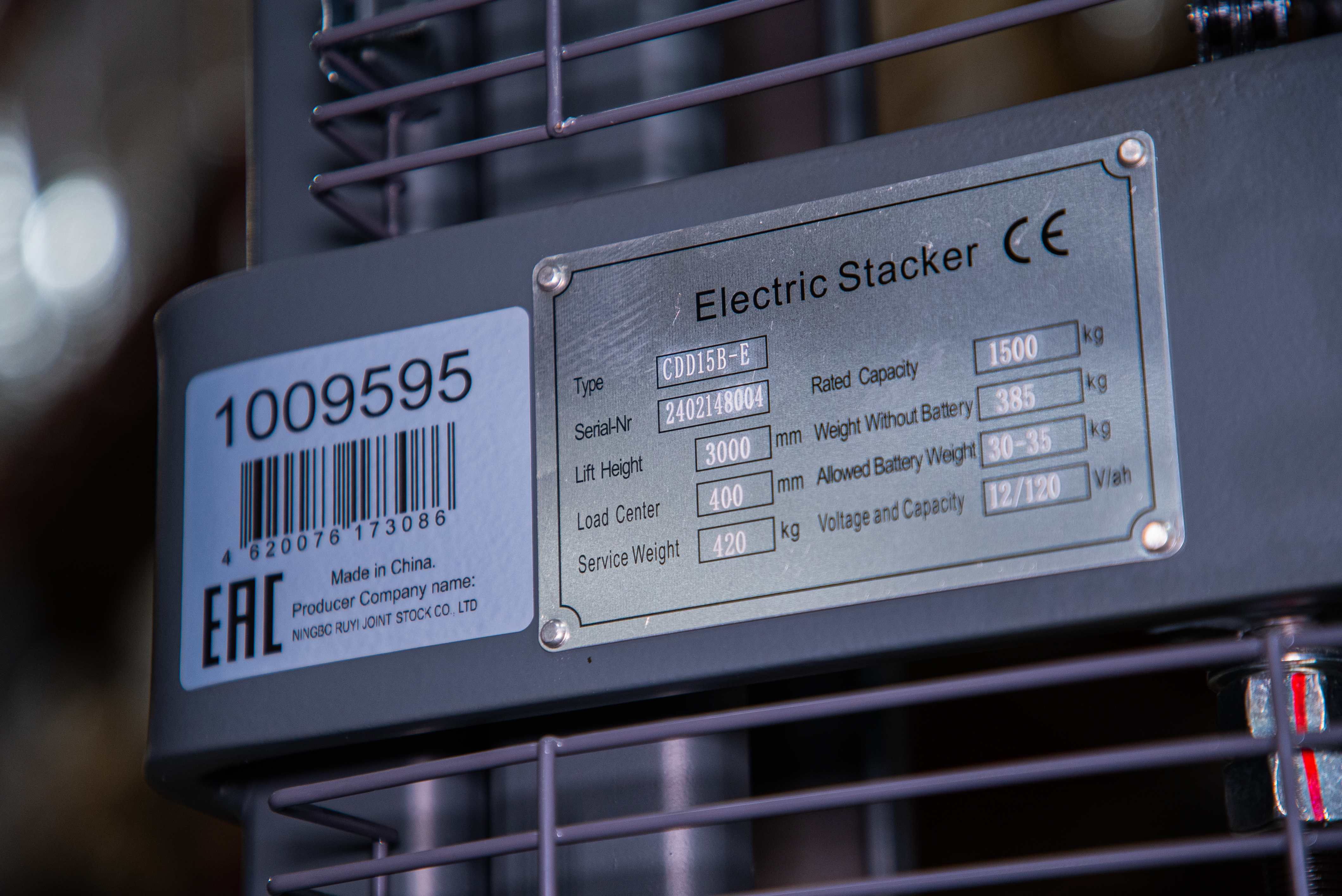 Штабелер гидравлический с электроподъемом 1,5 т 3,0 м XILIN CDD15B-E с раздвижными вилами