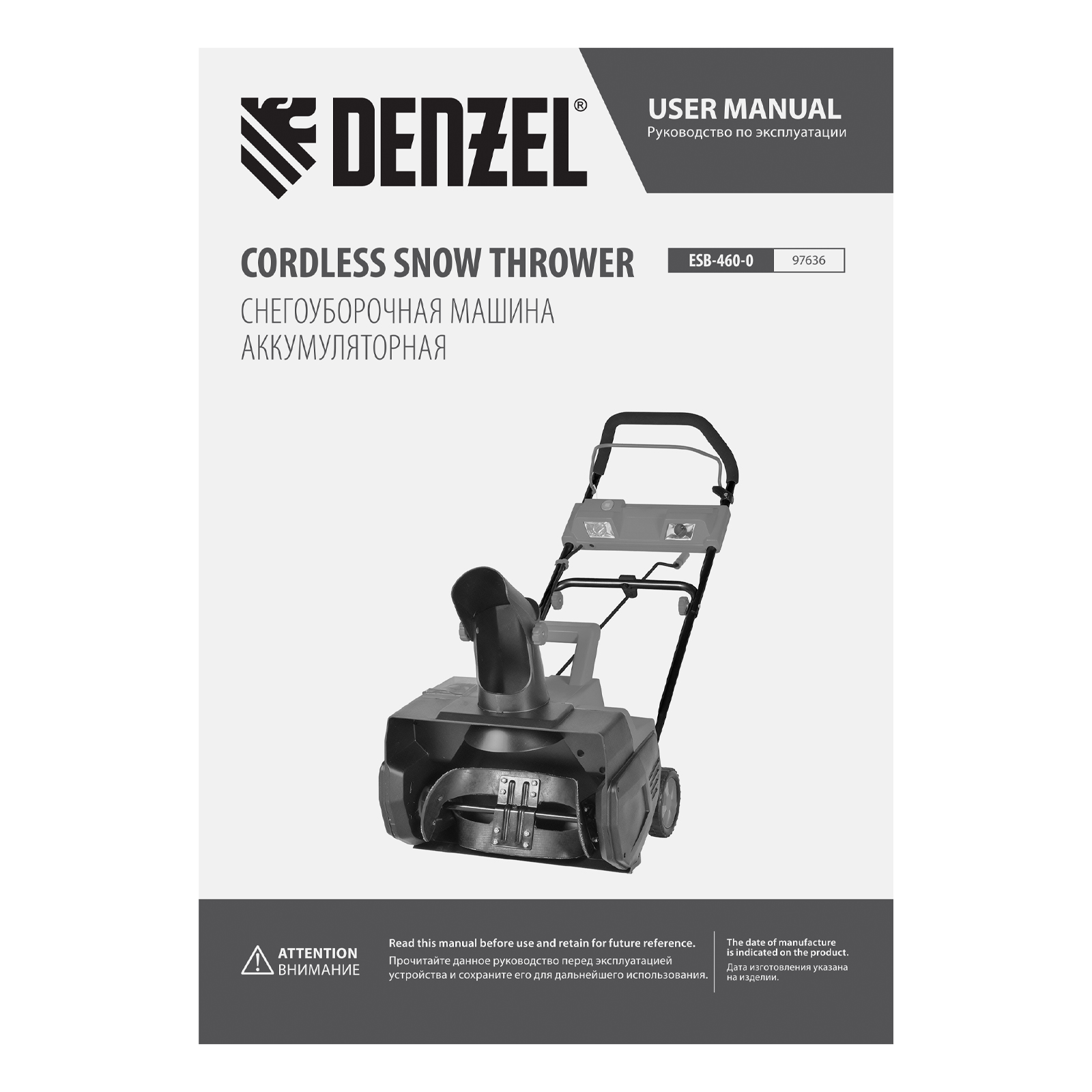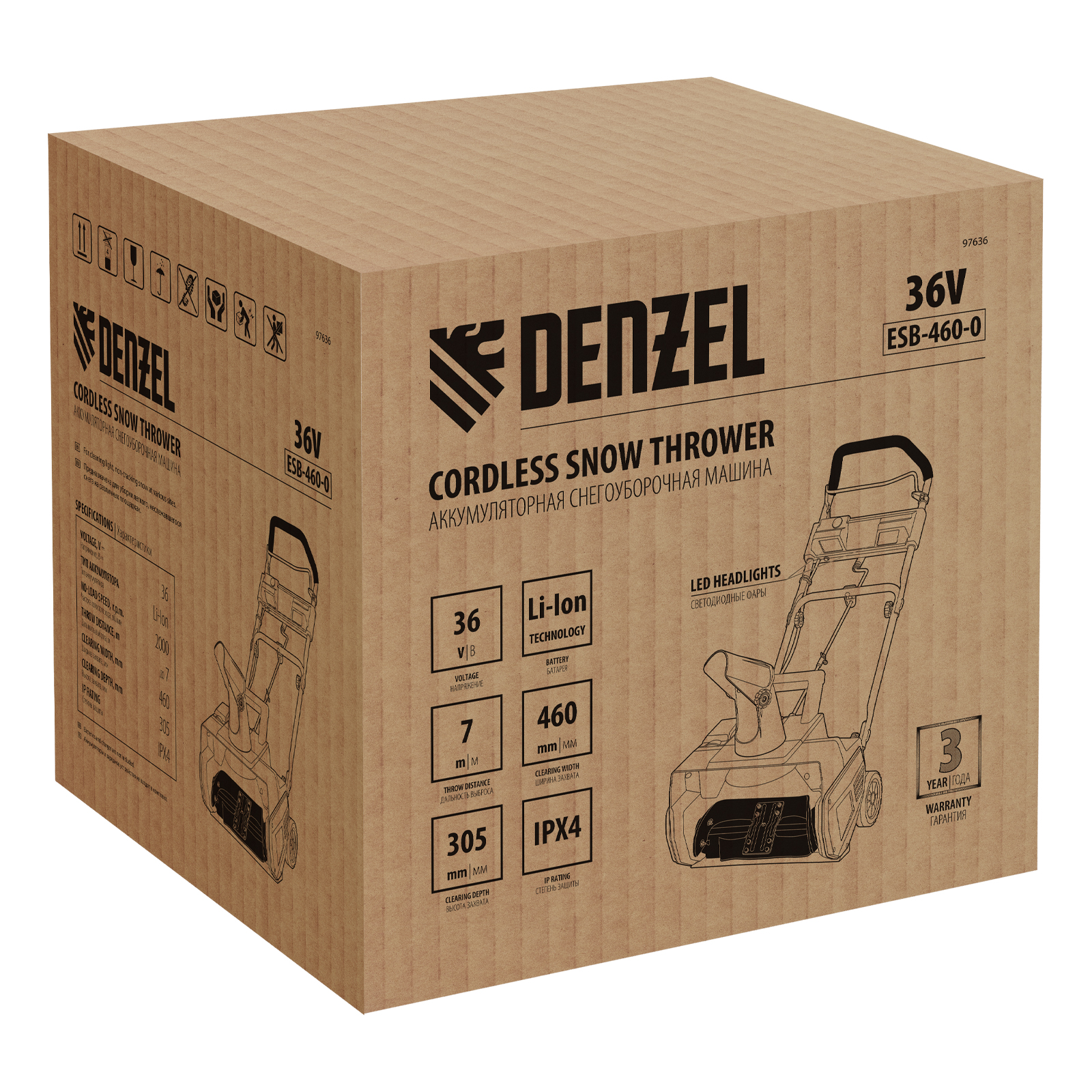 Снегоуборочная машина аккумуляторная, ESB-460-0, Li-Ion, 36В Denzel в Уфе