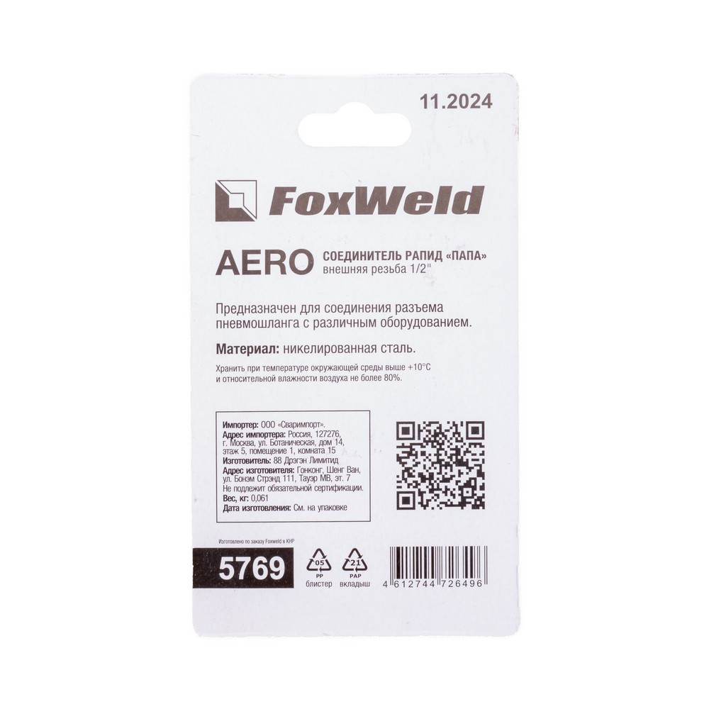 Соединитель Rapid M "Папа" - внешняя резьба 1/2" AERO в Уфе