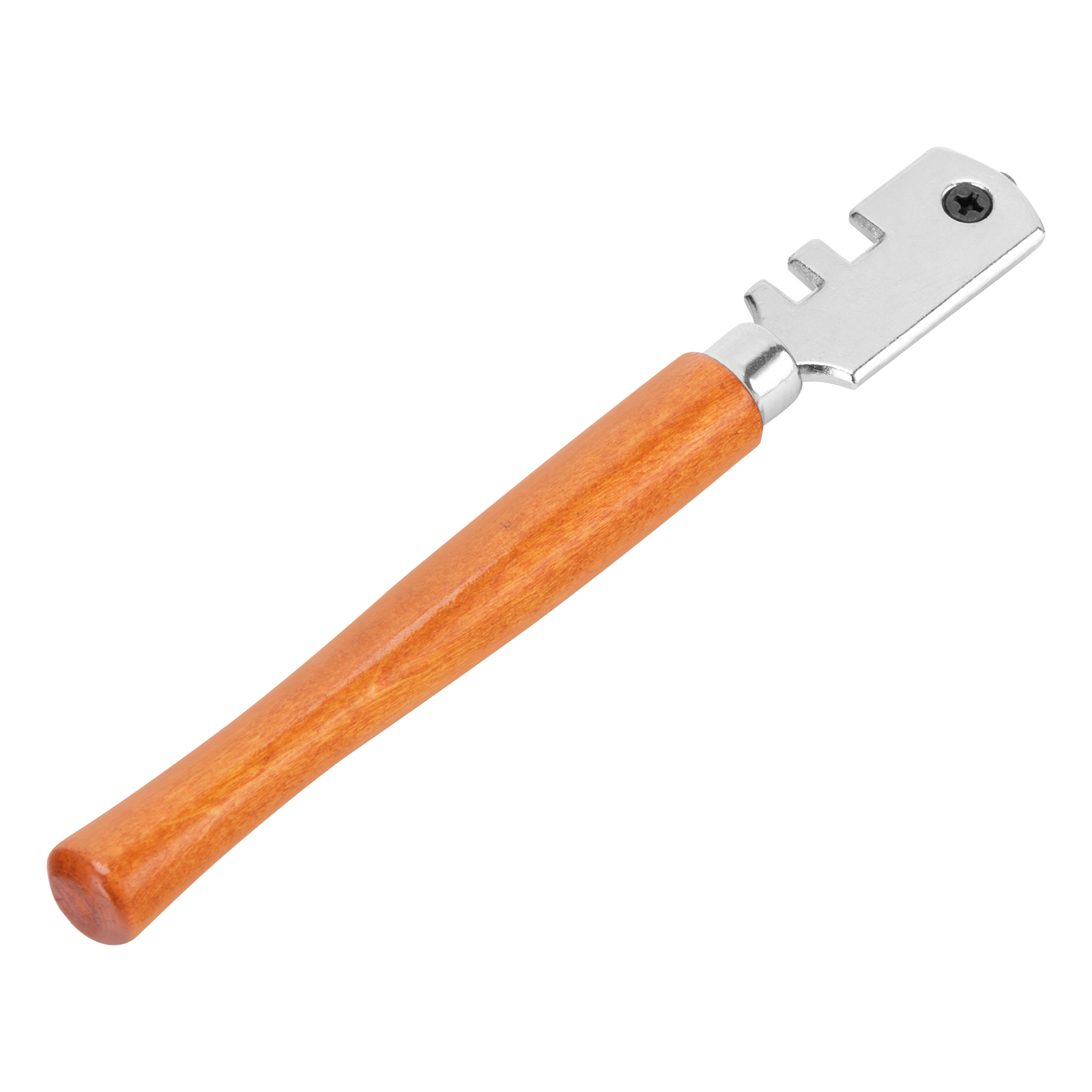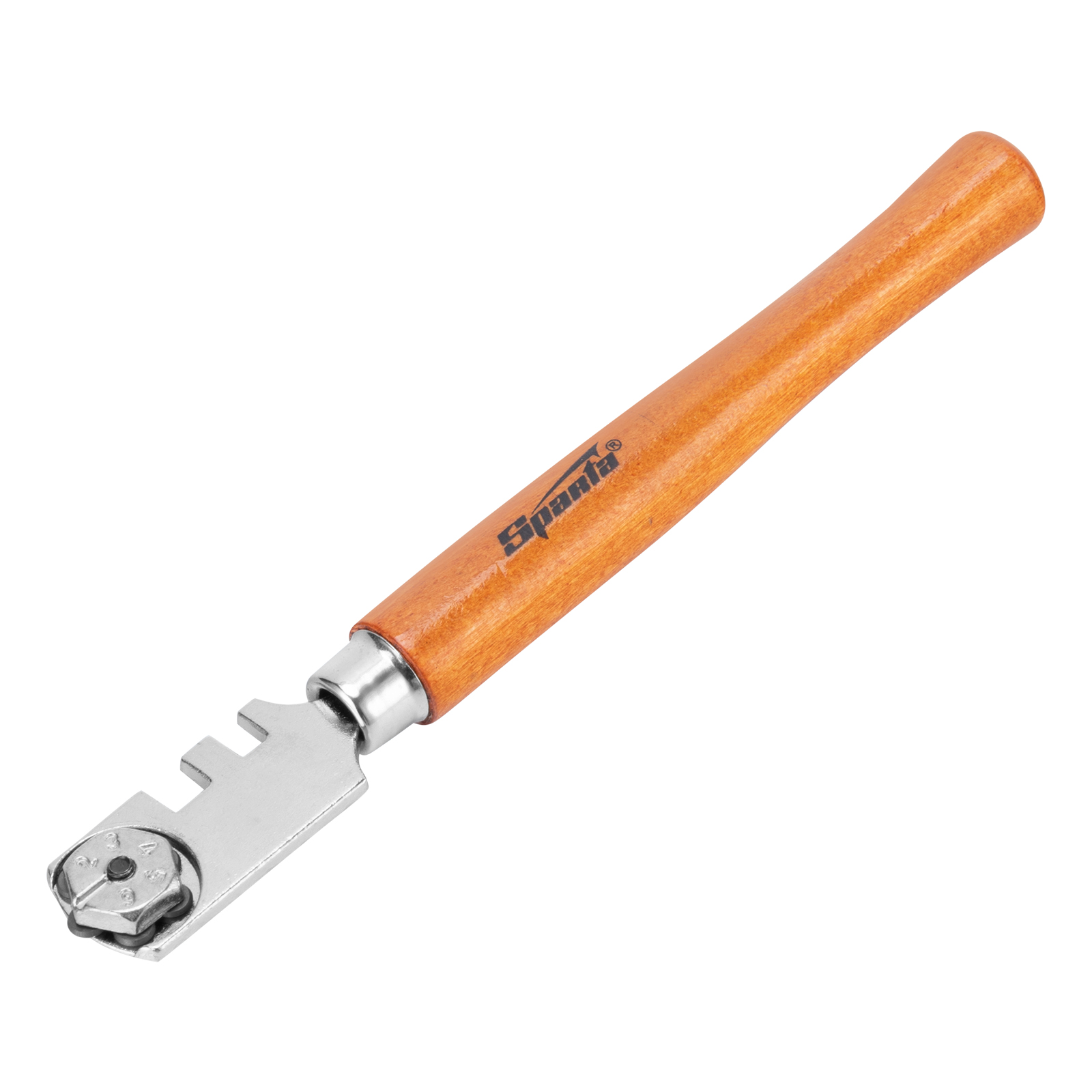 Шестироликовый стеклорез Sparta 872235 с деревянной рукояткой служит для резки стекла толщиной до 6 мм и подходит для бытового использования. С его помощью можно изготовить столешницу, полочку, заменить стекло в аквариуме или двери. Блок с 6 роликами позволяет быстро установить новый режущий элемент взамен изношенного — достаточно ослабить винт и повернуть головку. На головке имеются пазы шириной 4 и 5 мм для отламывания кромки стекла, увеличивающие функциональность стеклореза.
