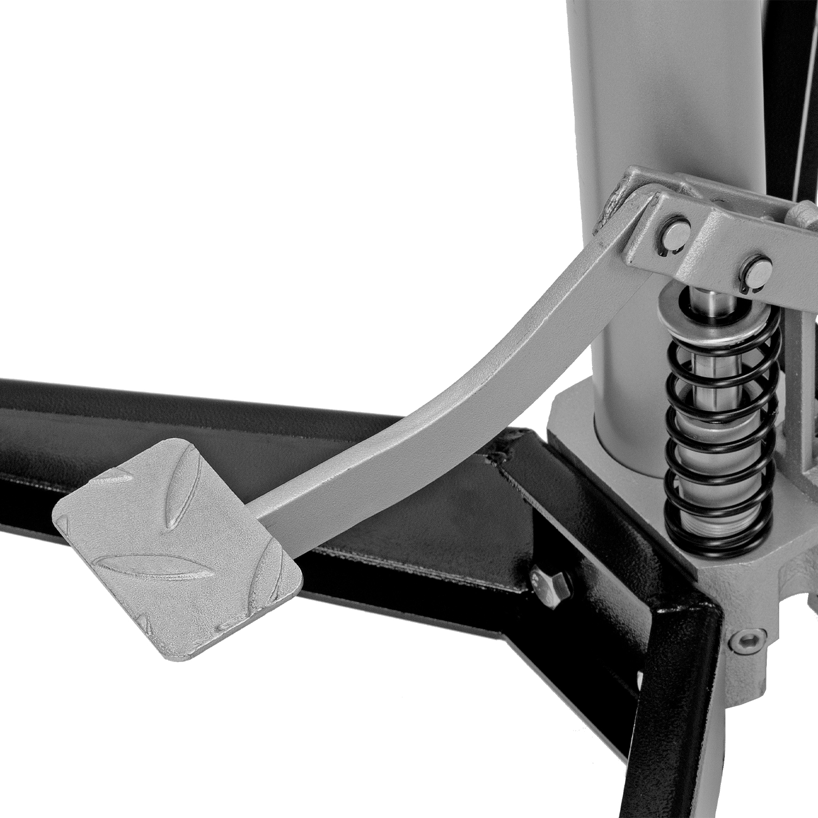 Трансмиссионная гидравлическая стойка Matrix 567375 предназначена для плавного подъема грузов массой до 0,5 т на высоту 1130-1945 мм. Пригодится профессиональным работникам СТО и автолюбителям при ремонте или монтаже/демонтаже элементов трансмиссии, для страховки и фиксации транспортного средства при использовании подъемников. Гидравлический привод позволяет плавно регулировать высоту подъема одной ногой и обеспечивает высокое качество работы