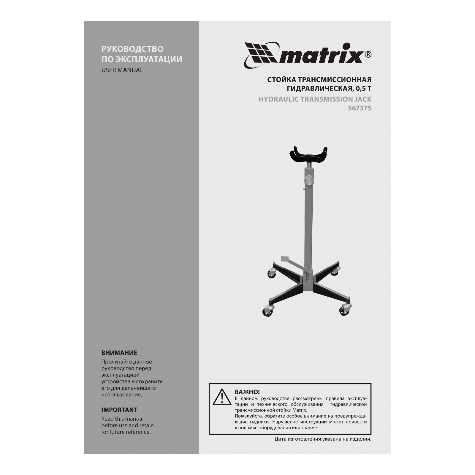 Стойка трансмиссионная гидравлическая, 0.5 т, H подъема 1130-1945 мм Matrix в Уфе
