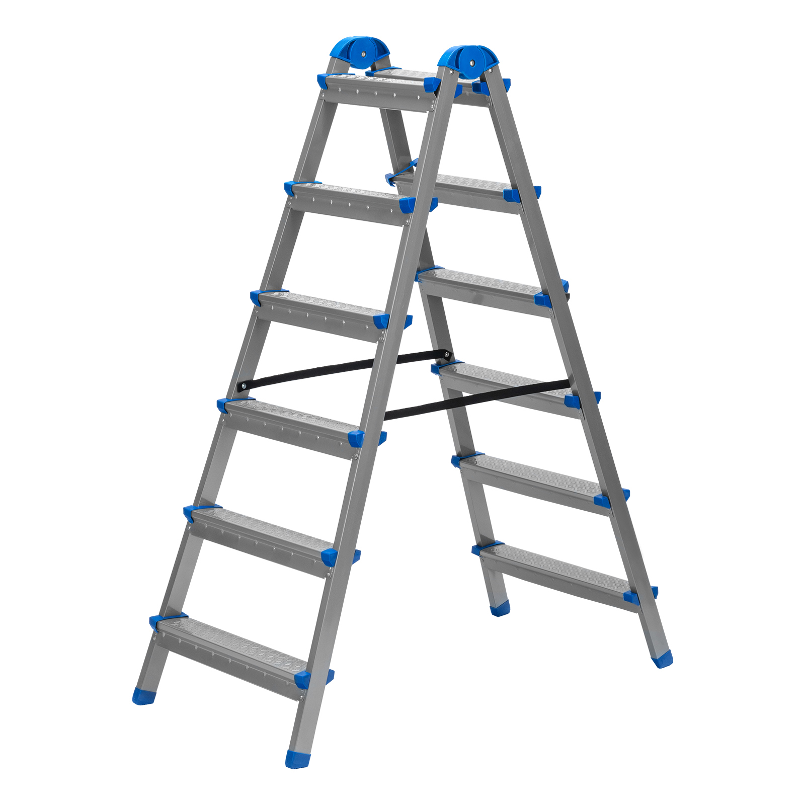 Стремянка двухсторонняя Сибртех 97986 со стальным профилем и 6 стальными ступенями помогает решать бытовые задачи на высоте, превышающей человеческий рост. Ее используют, чтобы доставать предметы с антресолей или шкафов, проводить уборку, менять лампочки, вешать полки или картины. Работать с электроинструментом на ней не рекомендуется. Стремянка с пластиковым складным механизмом повышенной стабильности и широким основанием очень устойчива на ровной поверхности. Площадка находится на высоте 131,5 см от опорной поверхности, рабочая высота стремянки составляет 331,5 см (при среднем росте пользователя 170 см).