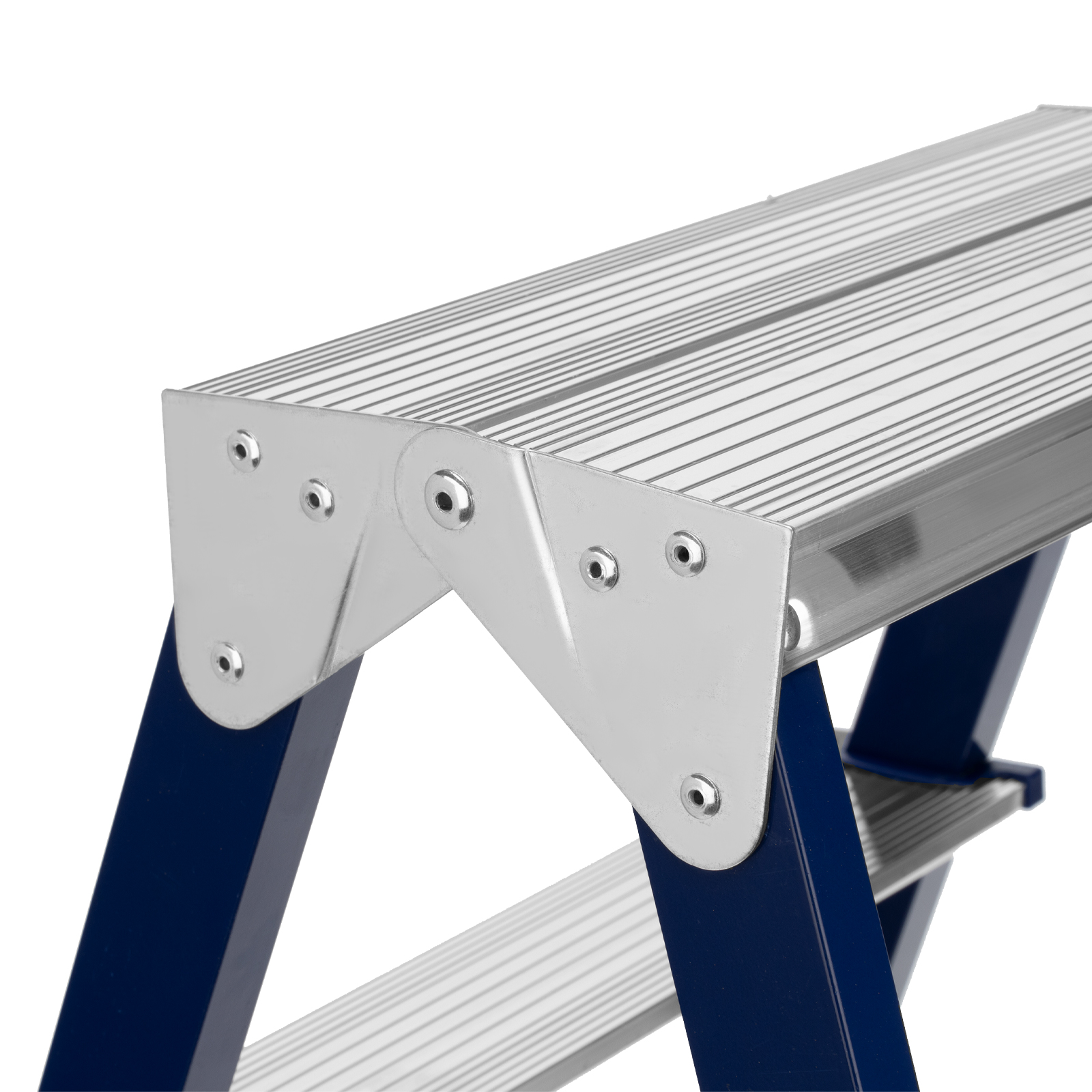 - Безопасность пользователя — широкие алюминиевые ступени не прогибаются, рифление на поверхности не дает поскользнуться.