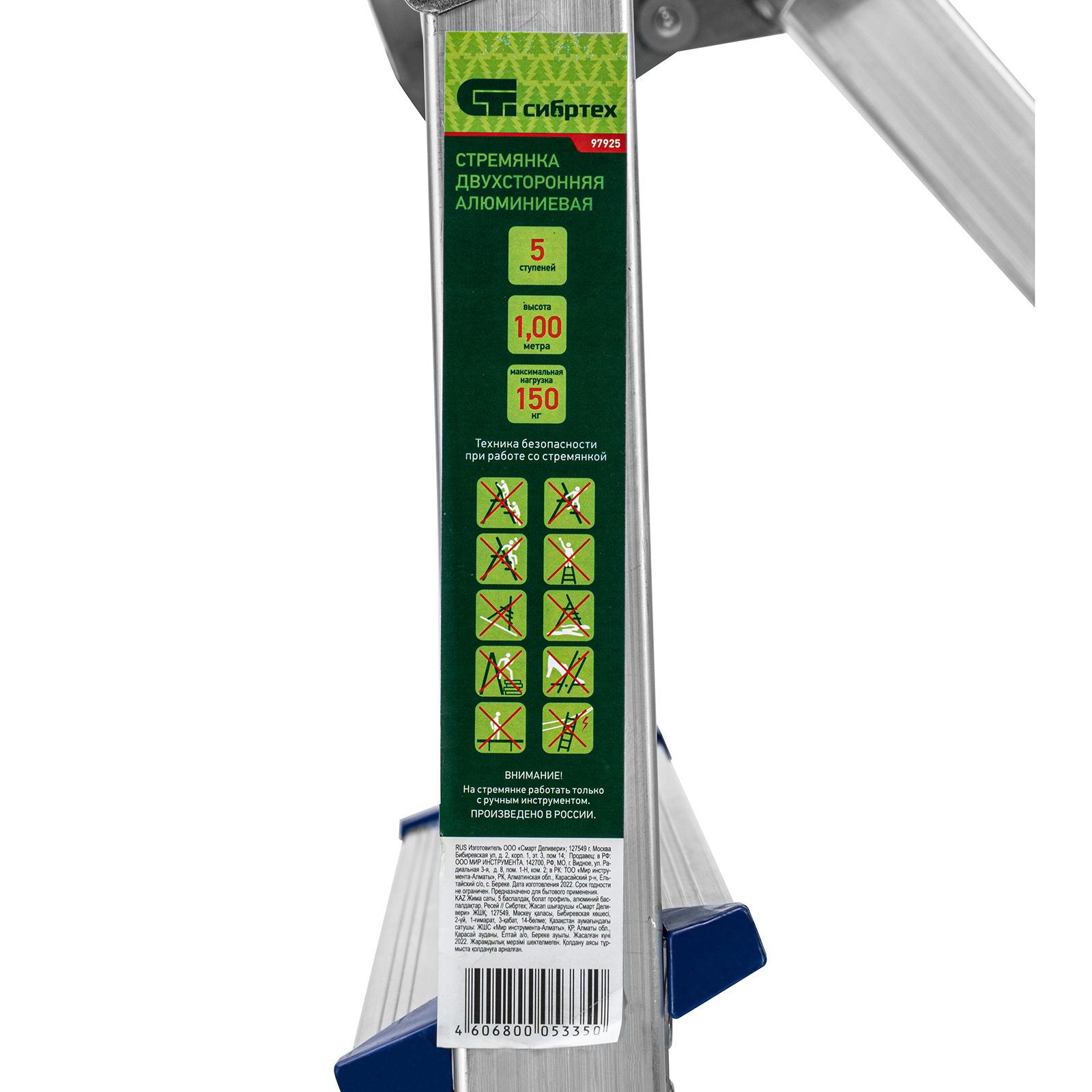Стремянка двусторонняя 5 ступеней, алюминиевая, Сибртех в Уфе