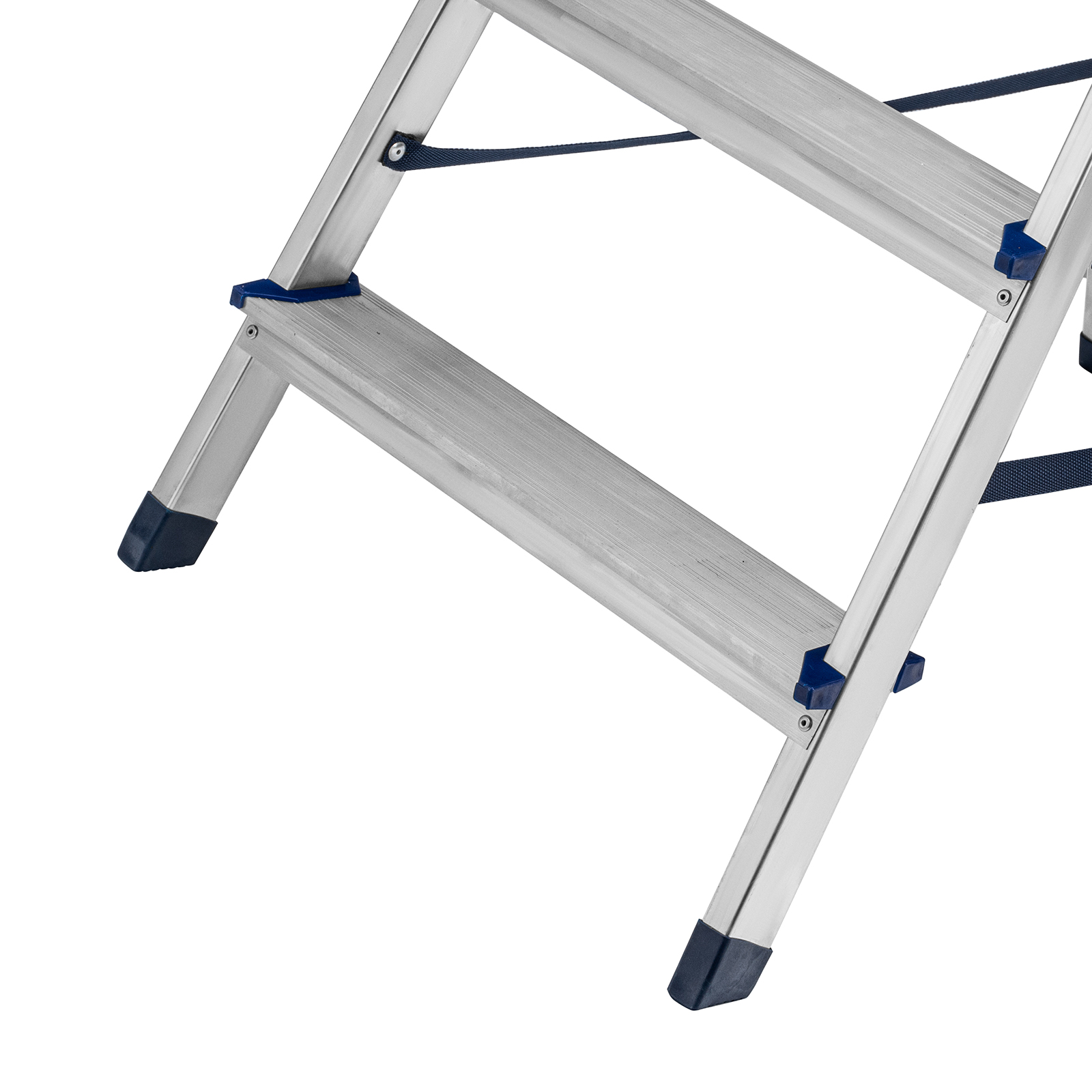 - Продуманная конструкция — нейлоновые страховочные стяжки повышают надежность фиксации стремянки в рабочем положении.