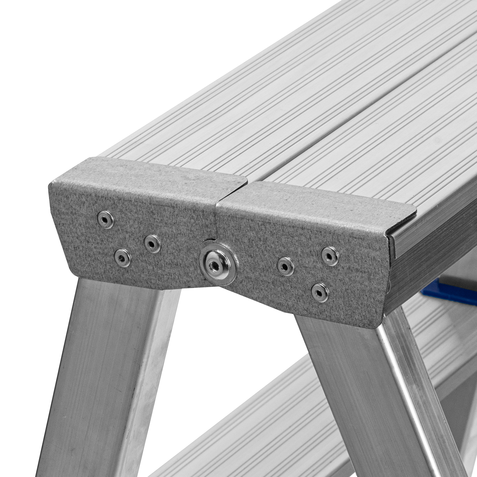 - Долговечность — стремянка выполнена из легкого, но прочного алюминия, устойчивого к коррозии.